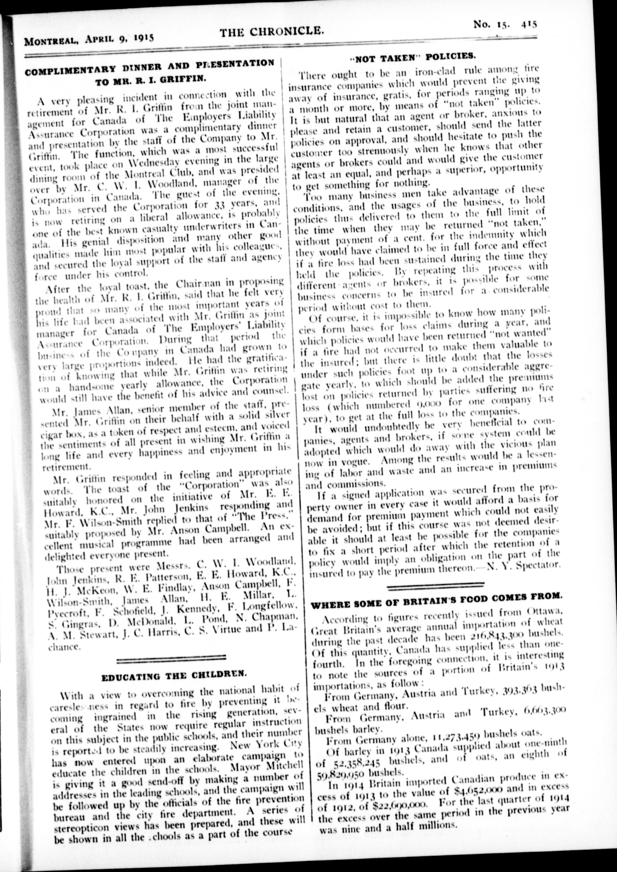 The chronicle : Vol. XXXV, No. 15 (April 9, 1915)