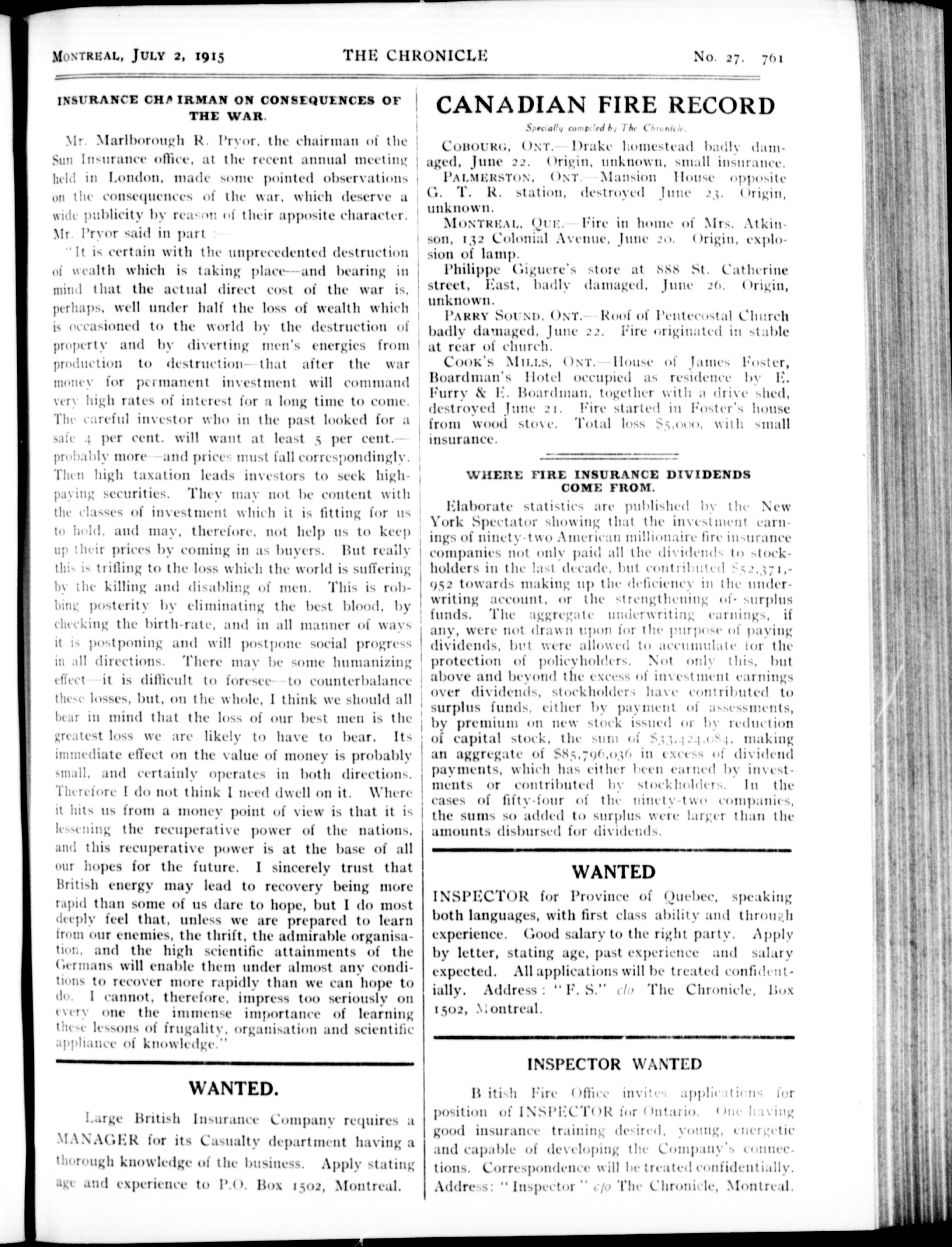 The chronicle : Vol. XXXV, No. 27 (July 2, 1915)