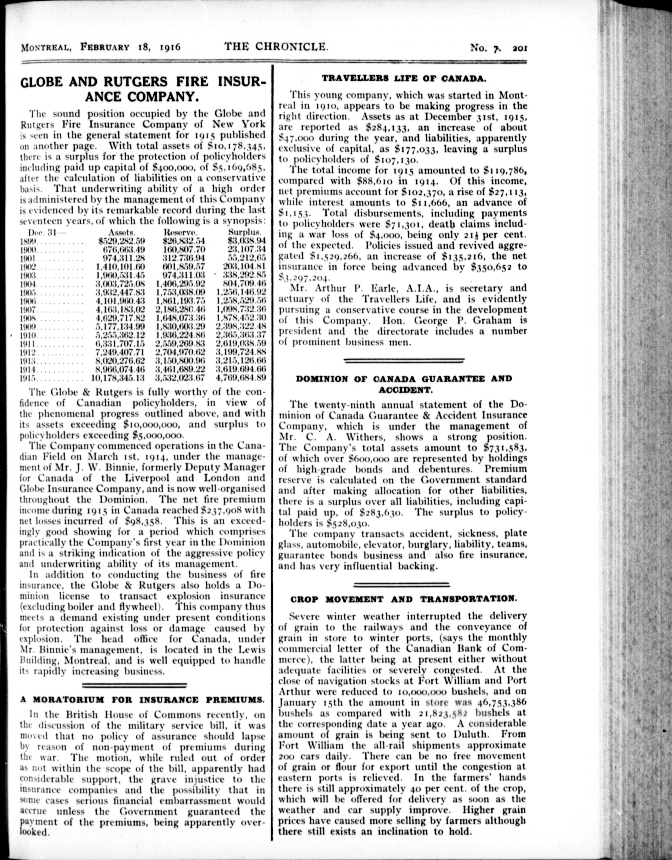 The chronicle : Vol. XXXVI, No. 7 (February 18, 1916)