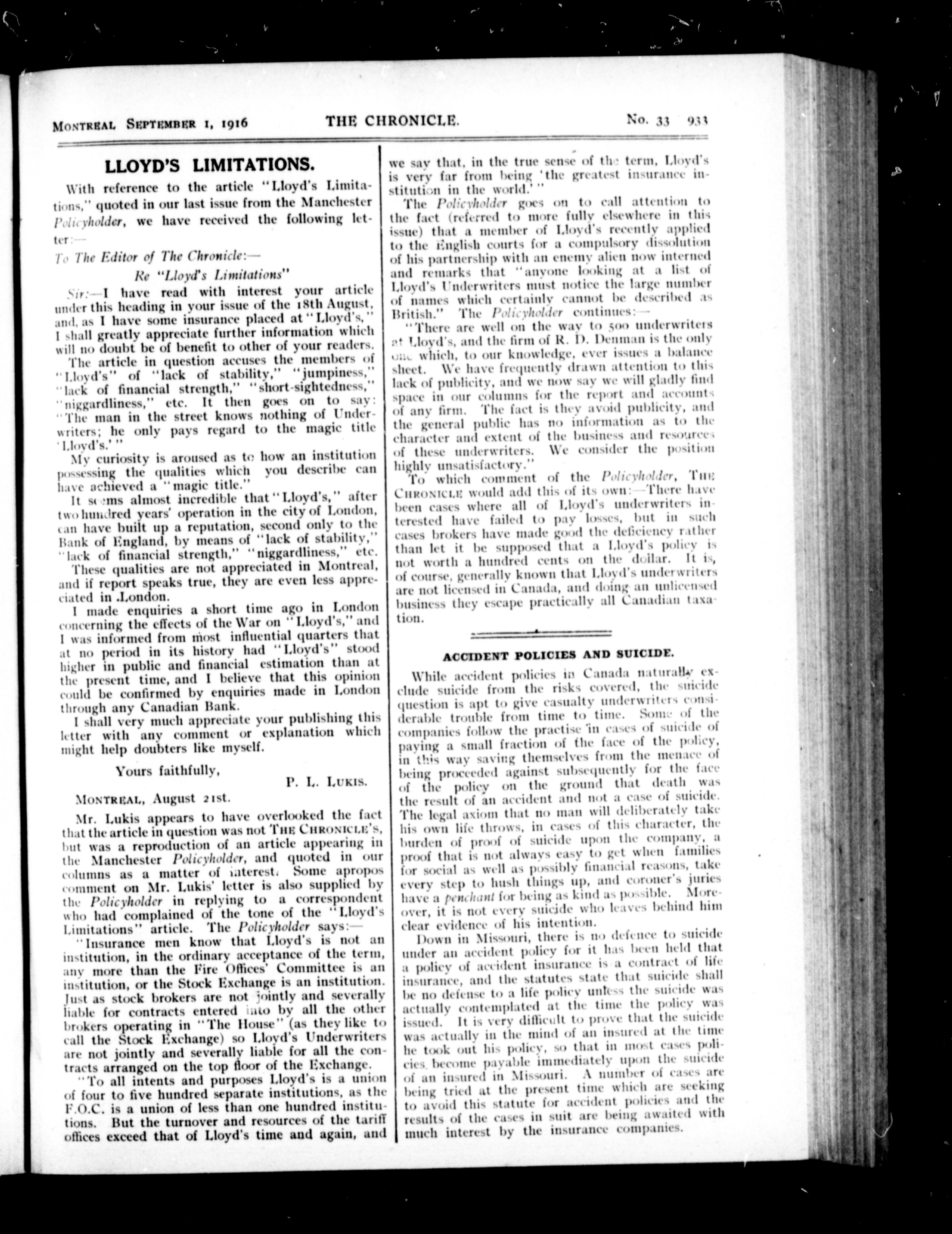 The chronicle : Vol. XXXVI, No. 33 (September 1, 1916)