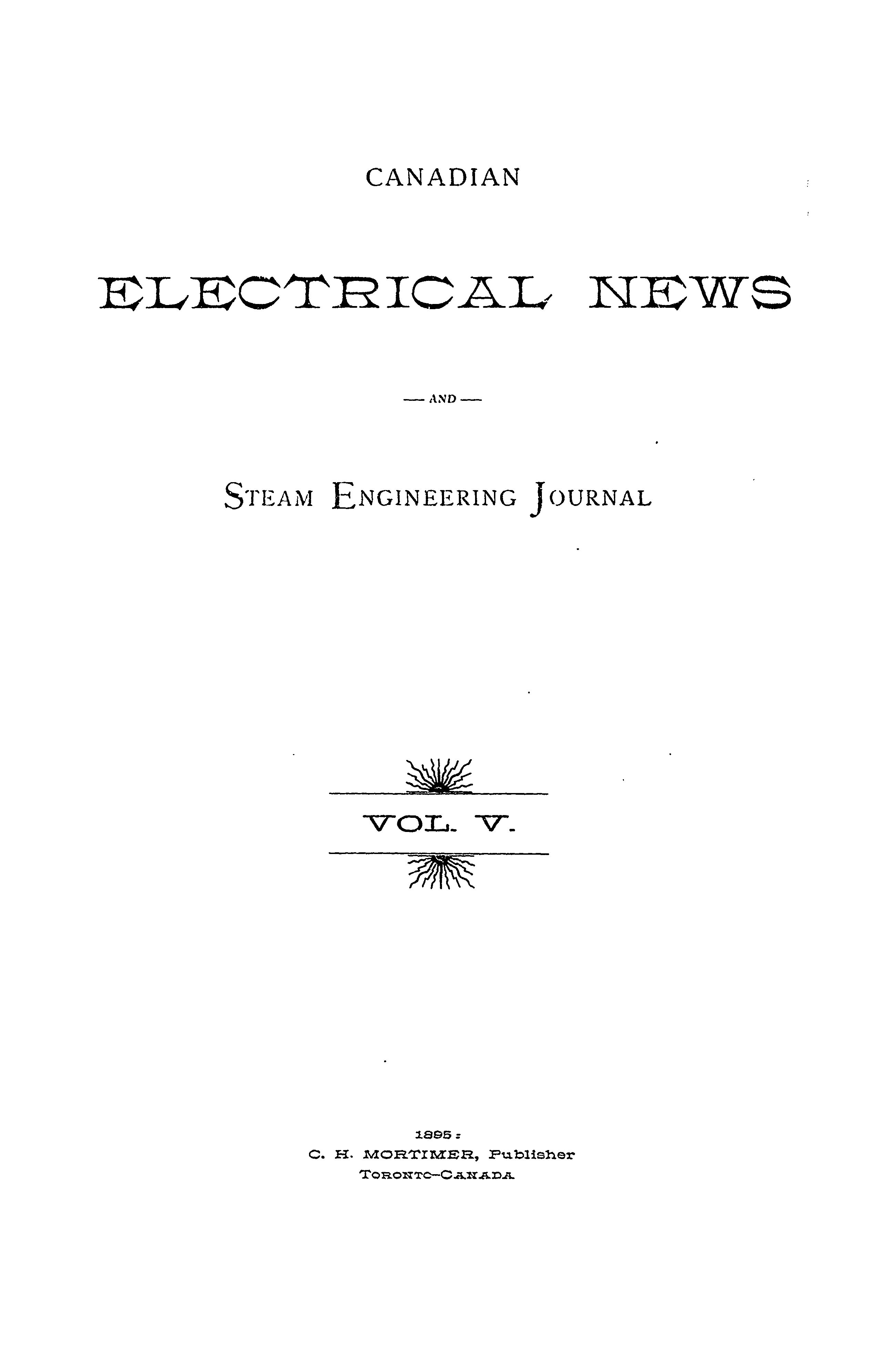 Canadian electrical news and steam engineering journal : [Vol. 5, no. 1 (Jan. 1895)]