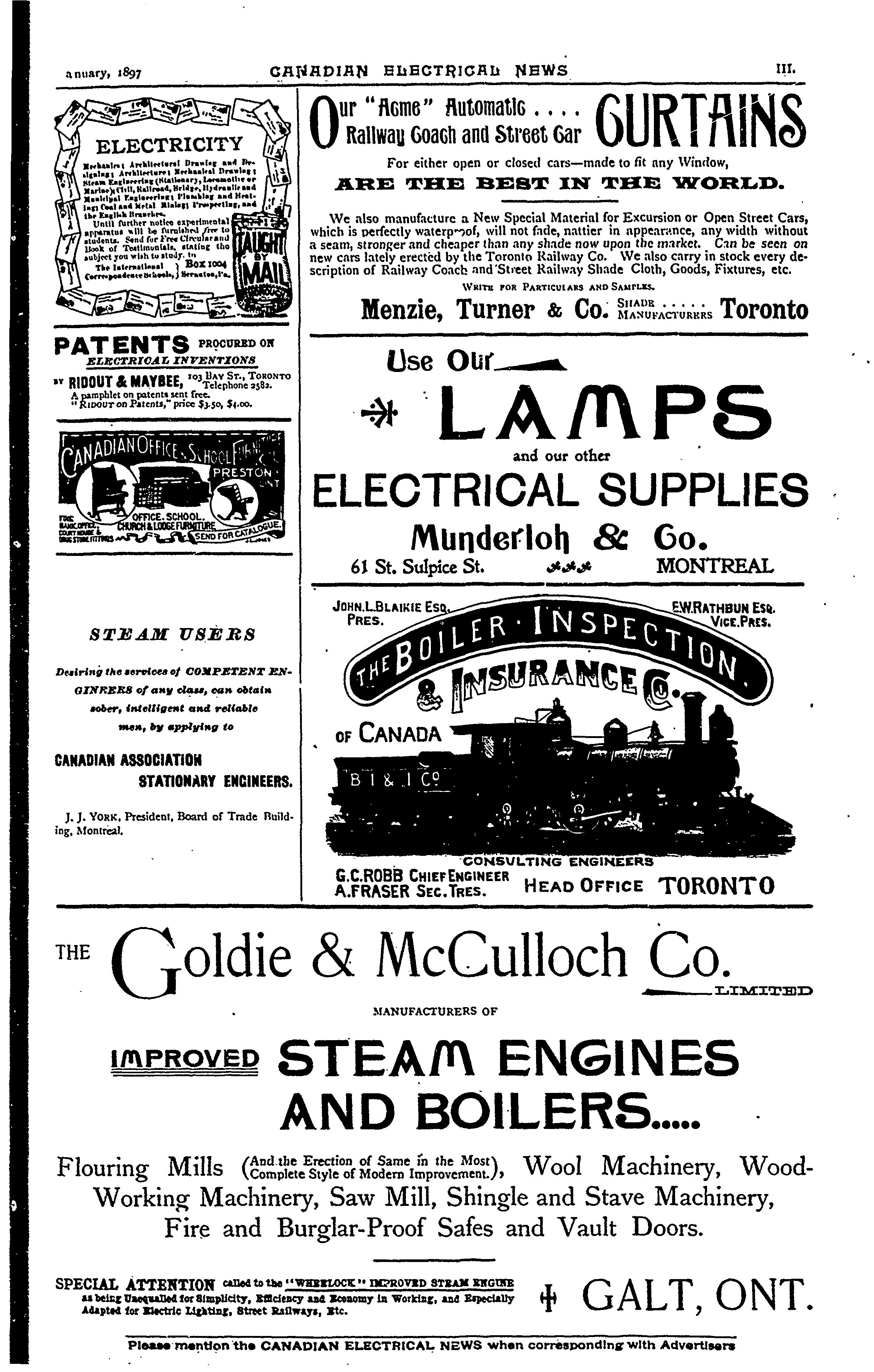 Canadian electrical news and steam engineering journal : [Vol. 7, no. 1 (Jan. 1897)]