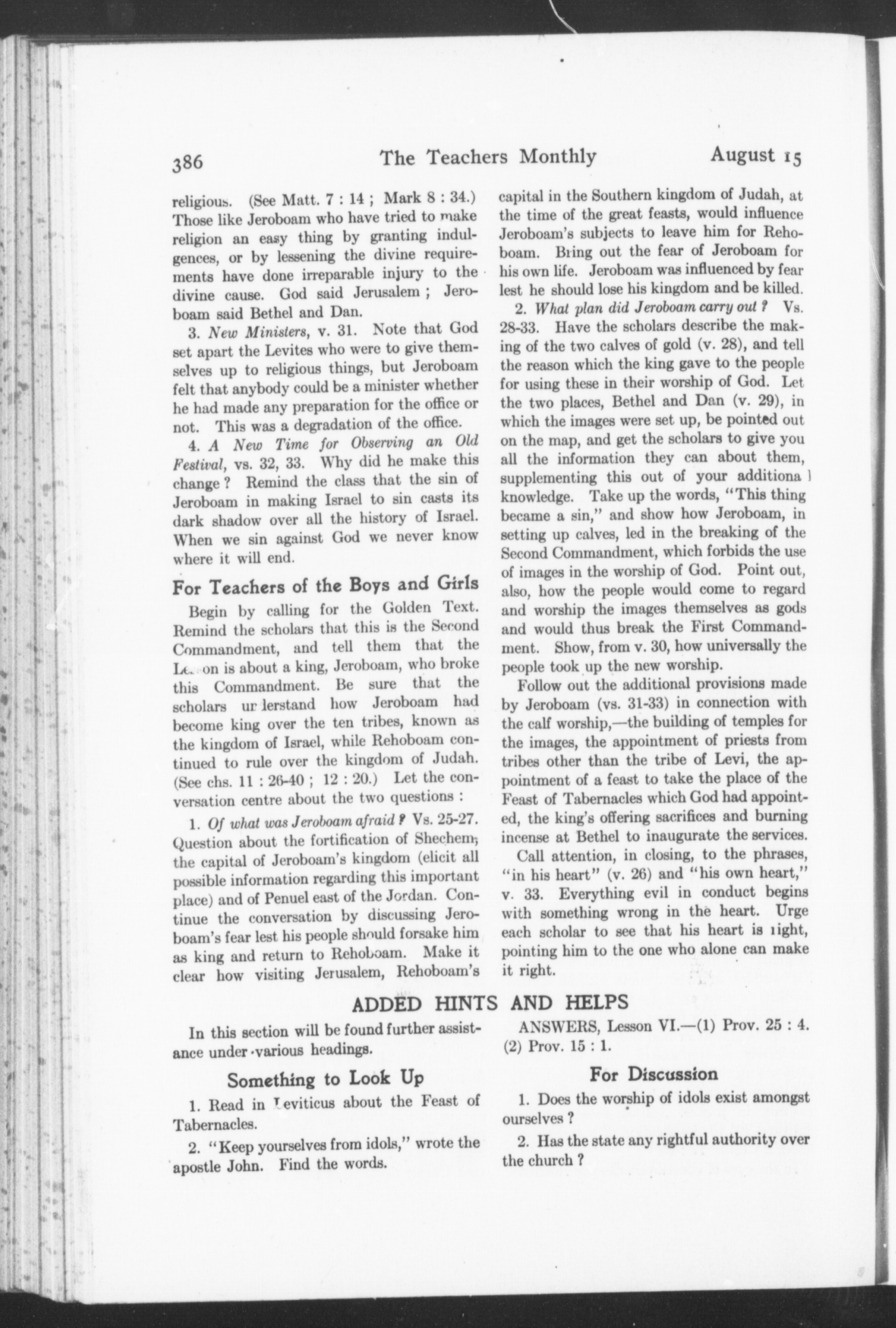 The teachers' monthly : Vol. 21, no. 8 (Aug. 1915)