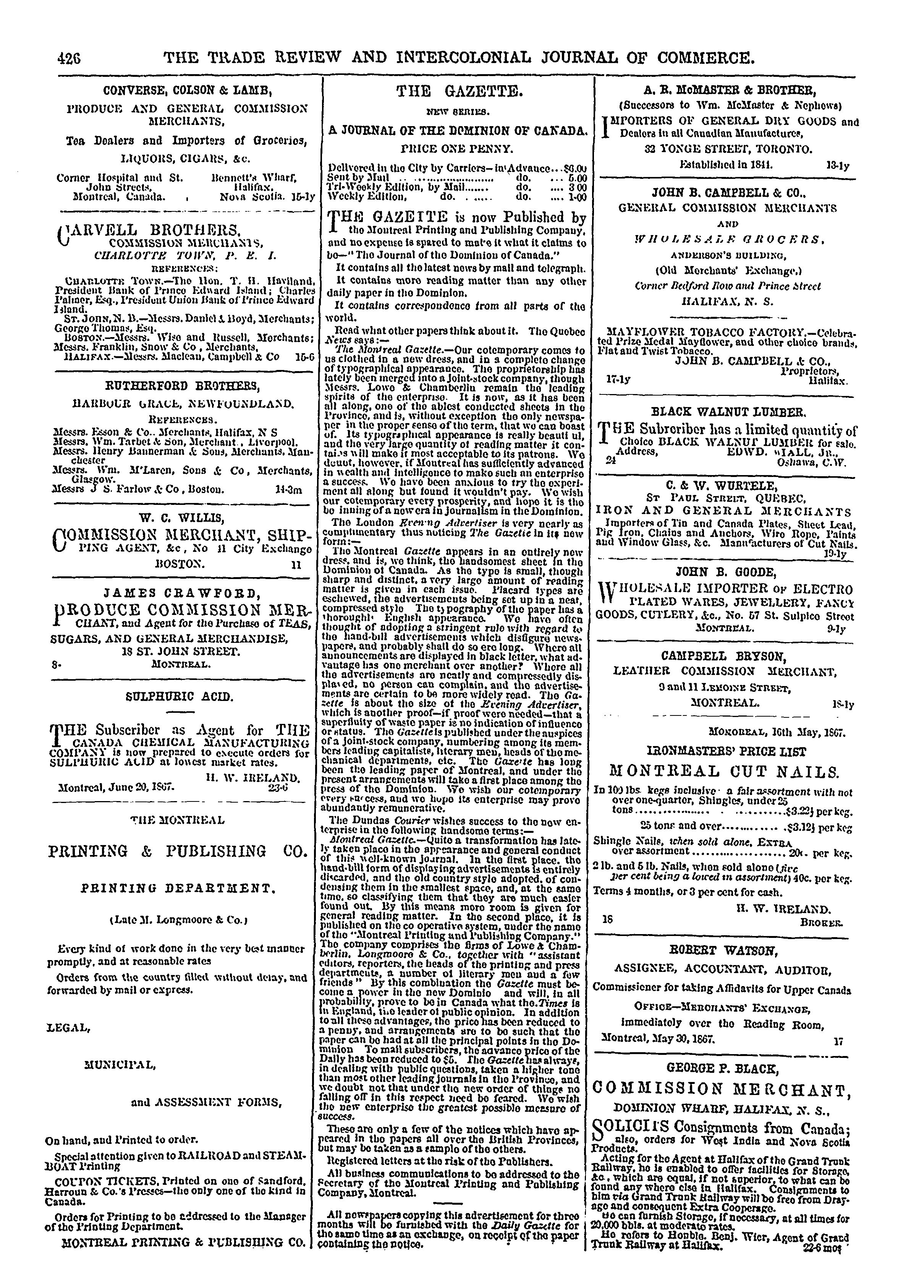 - The trade review and intercolonial journal of commerce [Vol. 3, no. 27 (July 19, 1867)]