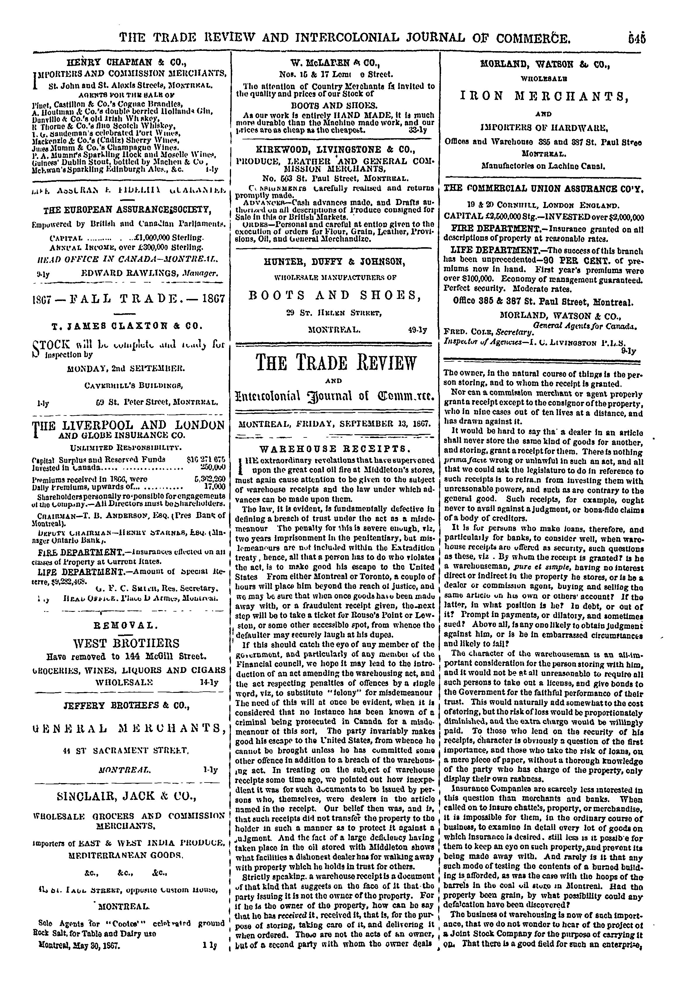 The trade review and intercolonial journal of commerce [Vol. 3, no. 35 (Sept. 13, 1867)]