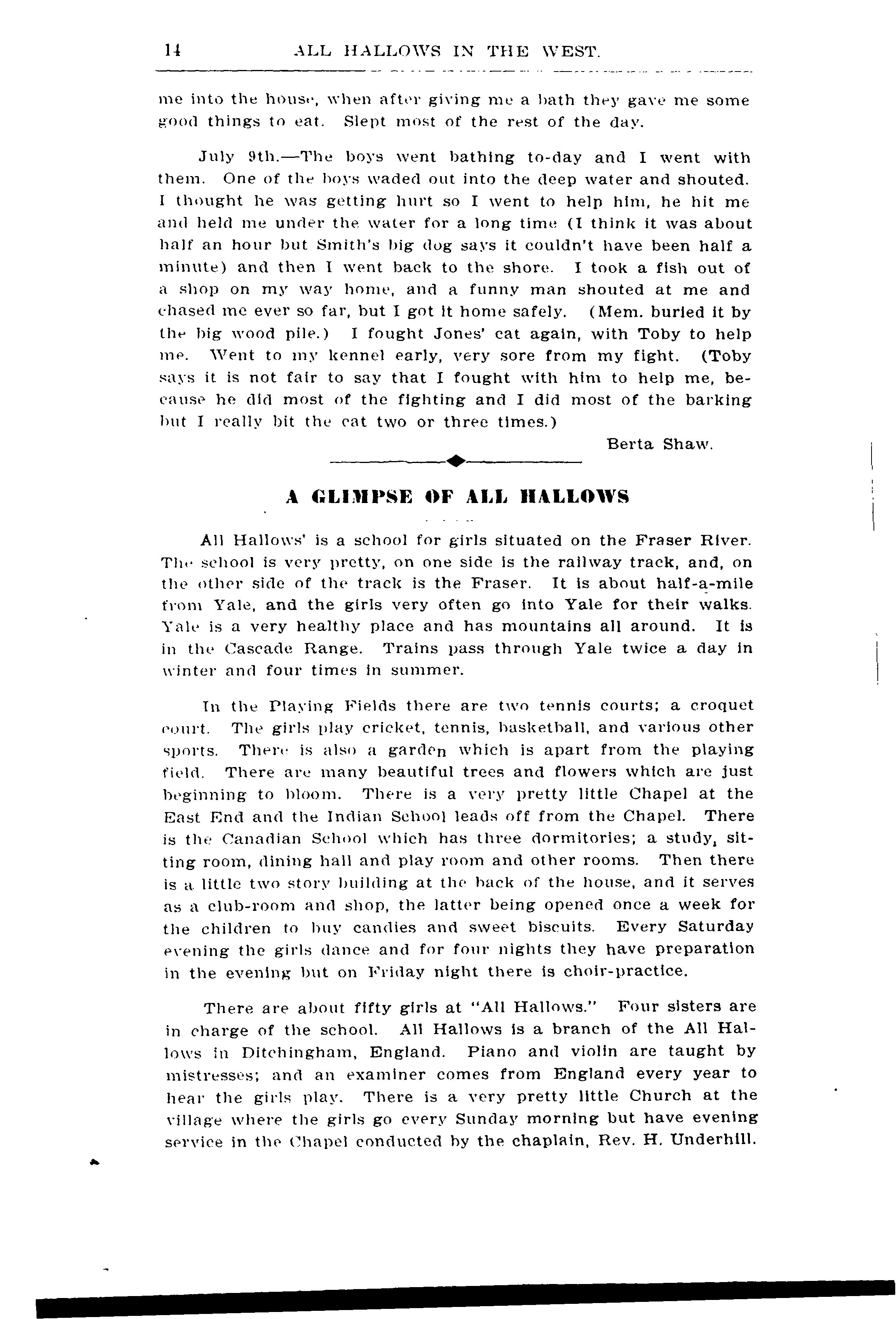 Yale, B.C. : All Hallows' School, [1909]; 35 images avec recherche en texte intégral