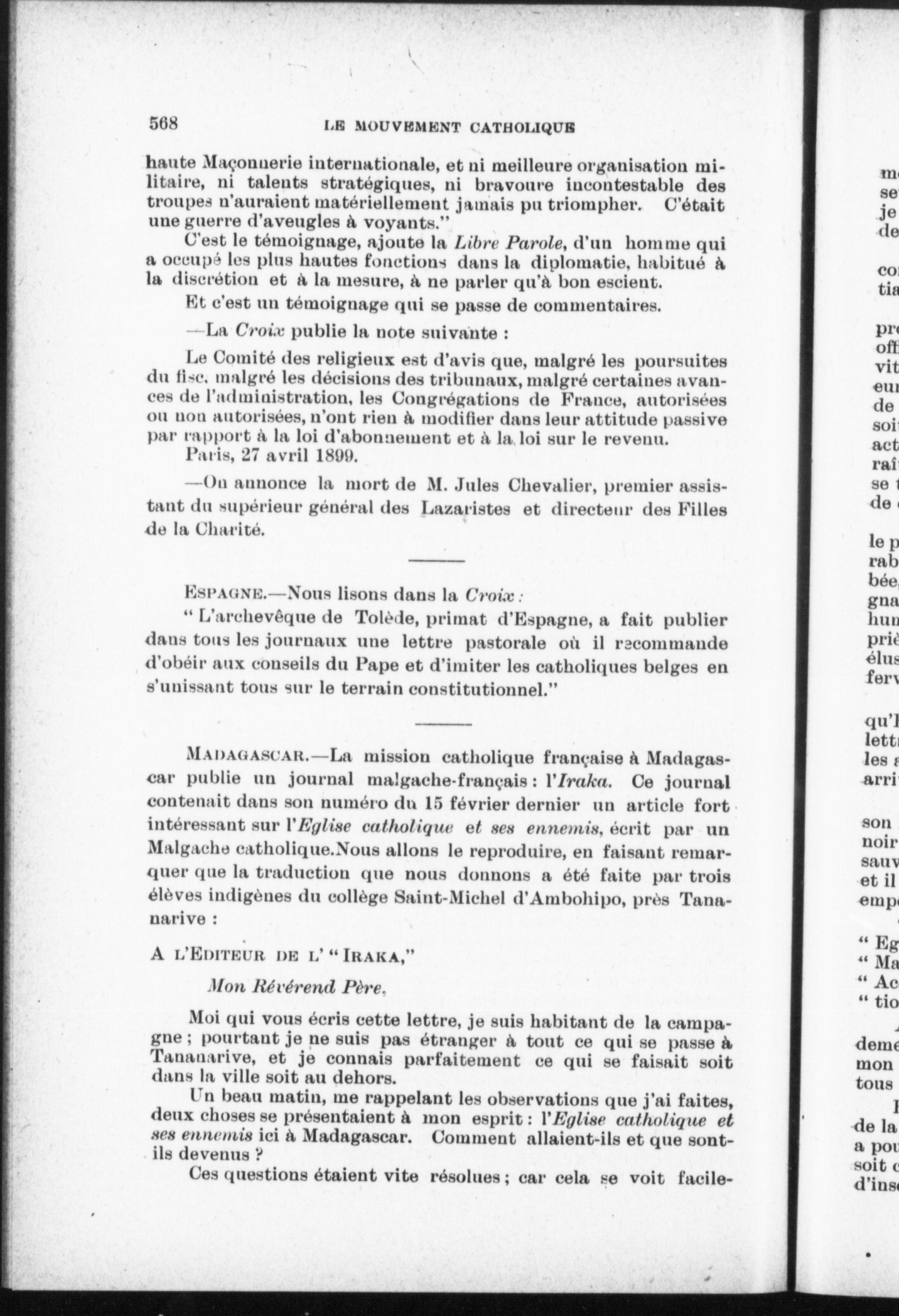 Le Mouvement catholique : Vol. III, [No] 20 (15 mai 1899)
