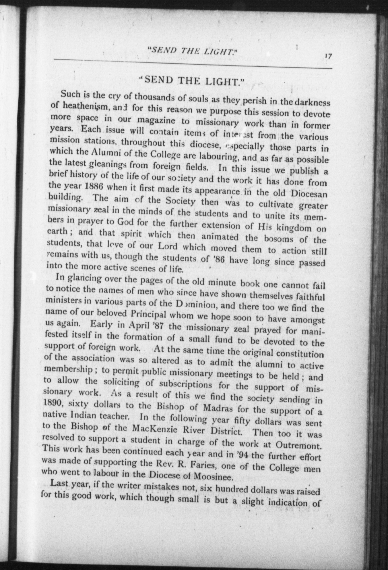 The Montreal Diocesan Theological College magazine : Vol. 5, No. 1 (November 1896)