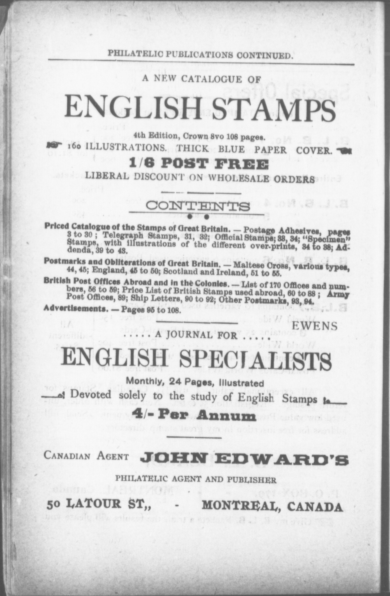 Montreal, Canada : Published by John Edwards, Philatelic Press Agent, [1896]