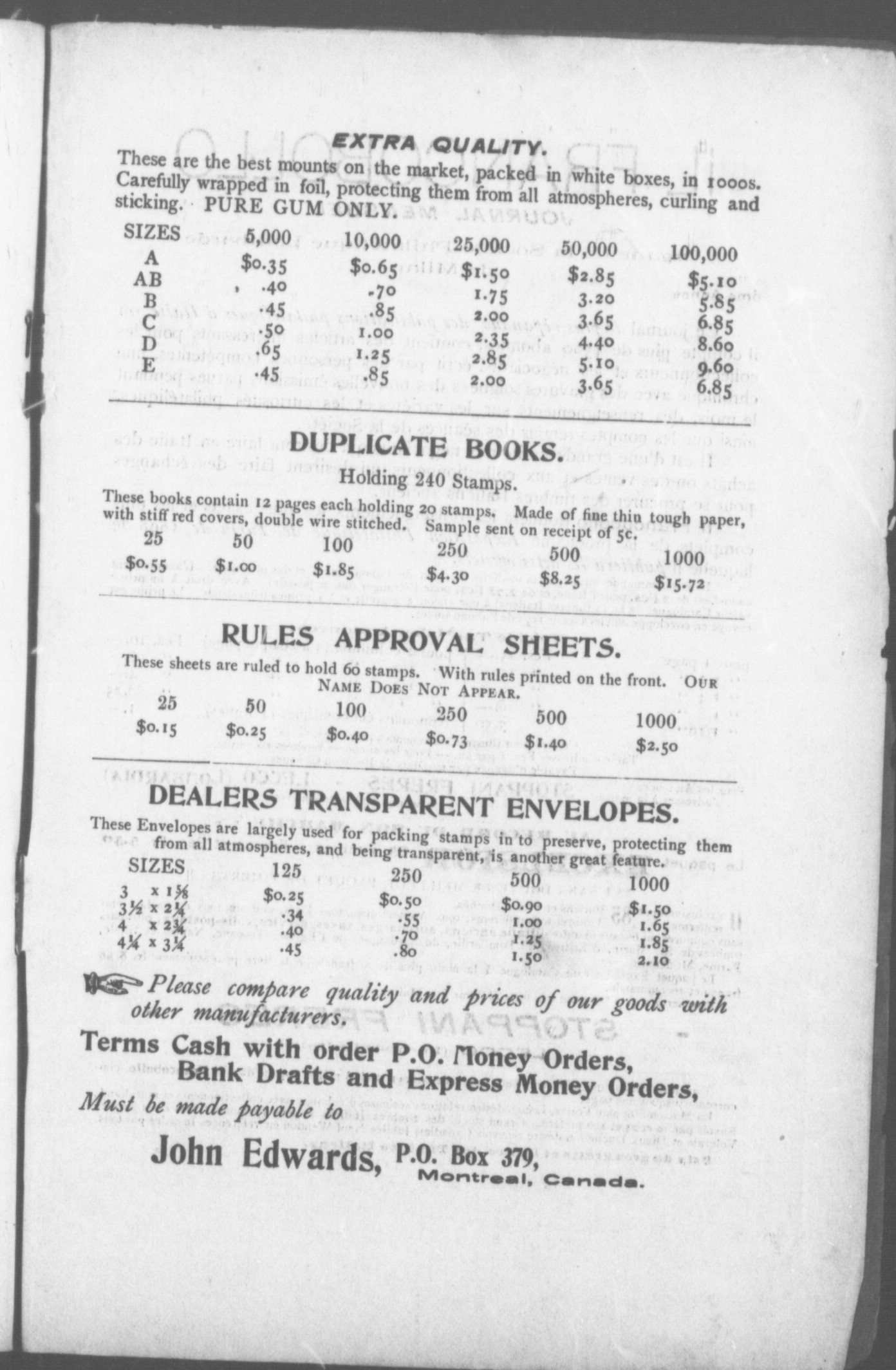 - Montreal, Canada : Published by John Edwards, Philatelic Press Agent, [1898]