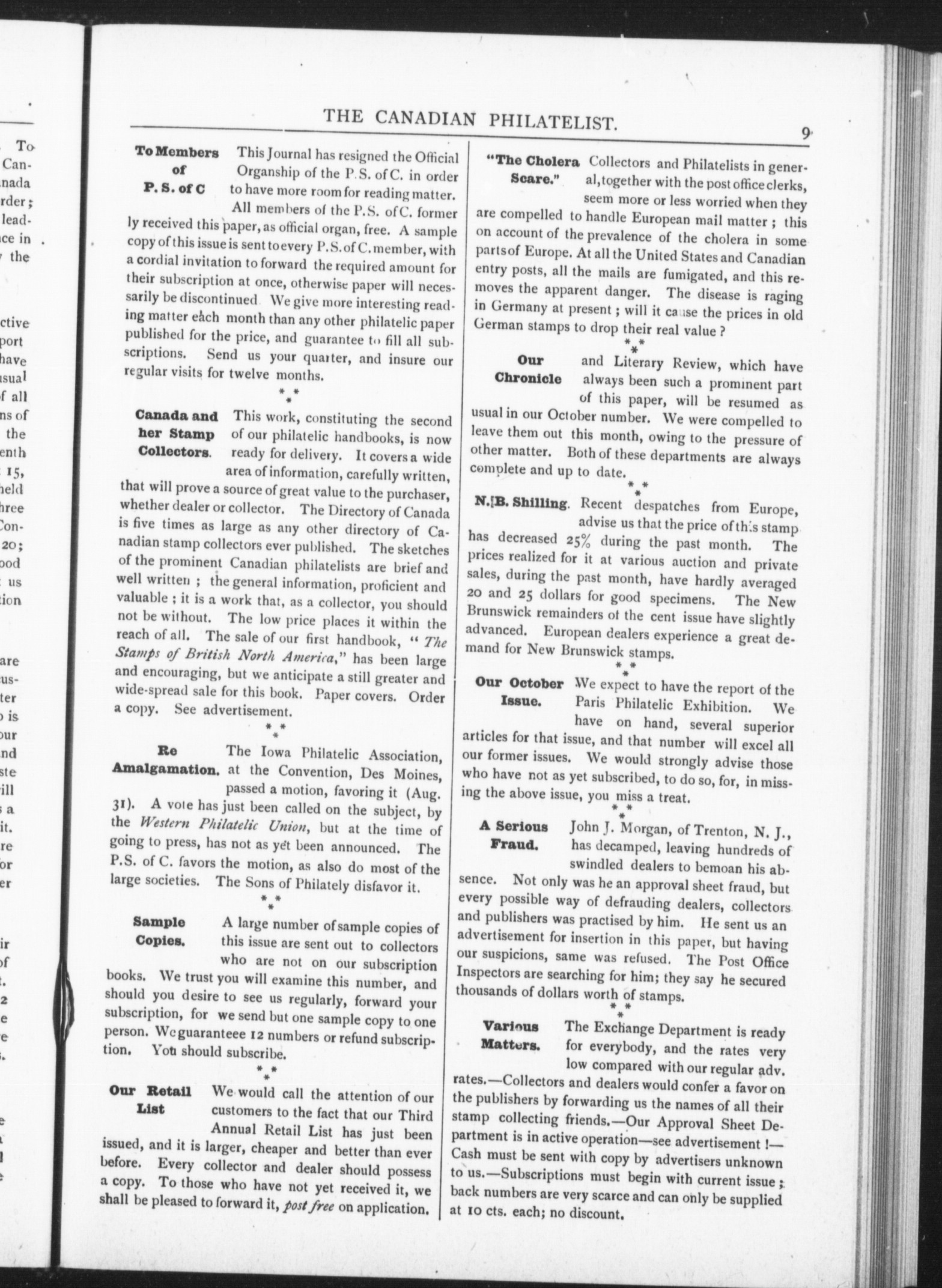 The Canadian philatelist : Vol. II, No. 1 (September 1892)