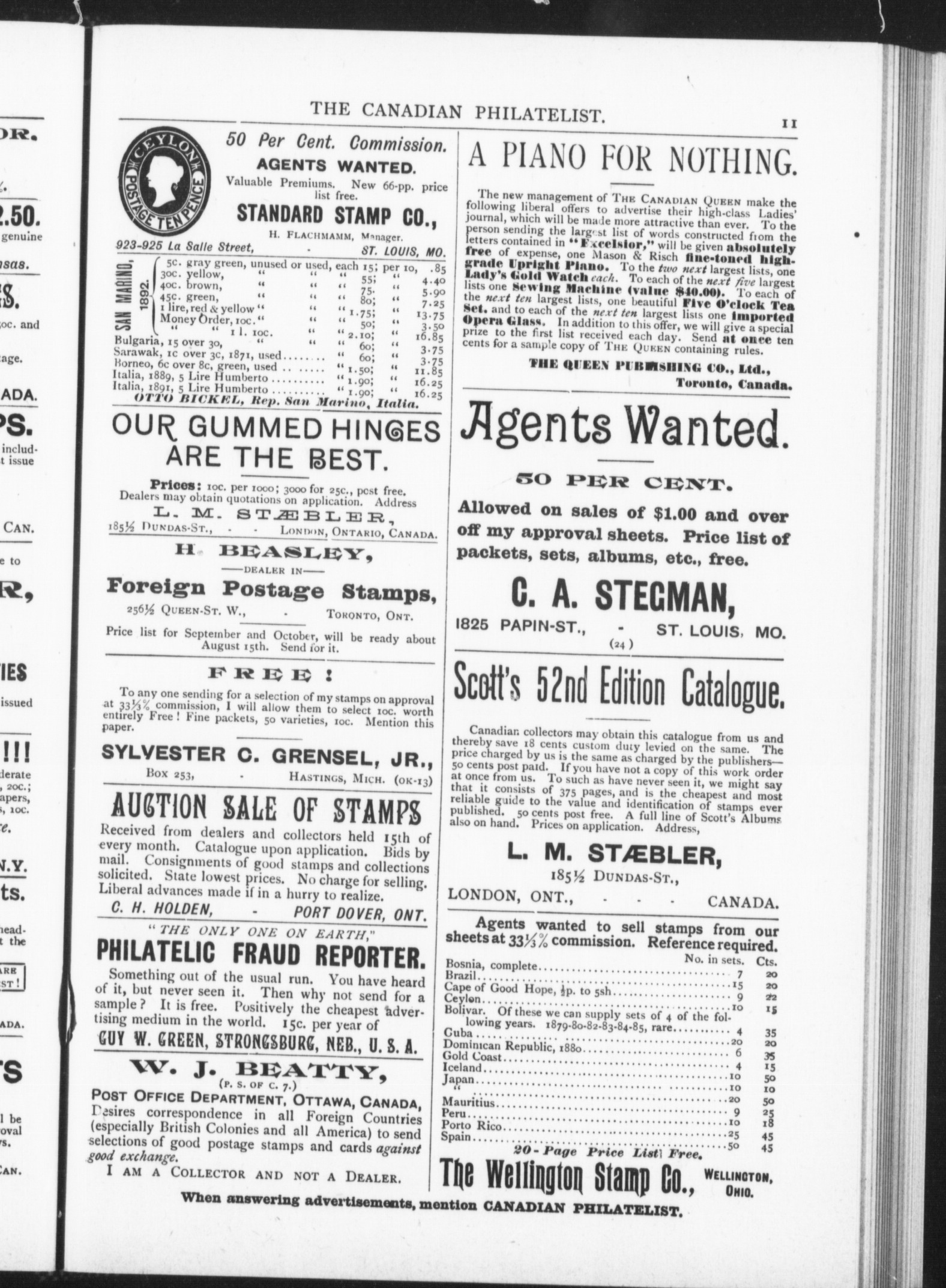 The Canadian philatelist : Vol. II, No. 1 (September 1892)