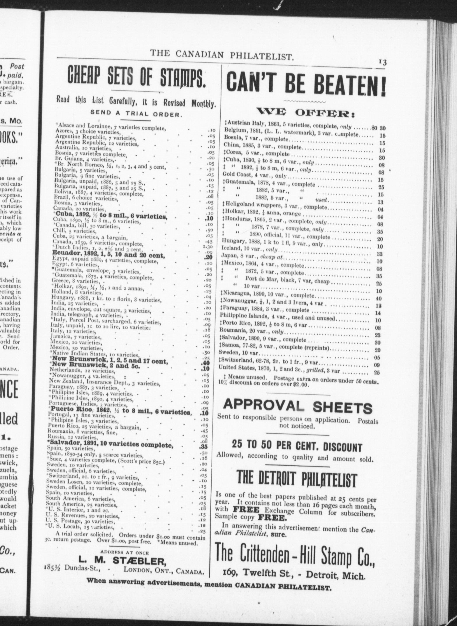 The Canadian philatelist : Vol. II, No. 1 (September 1892)