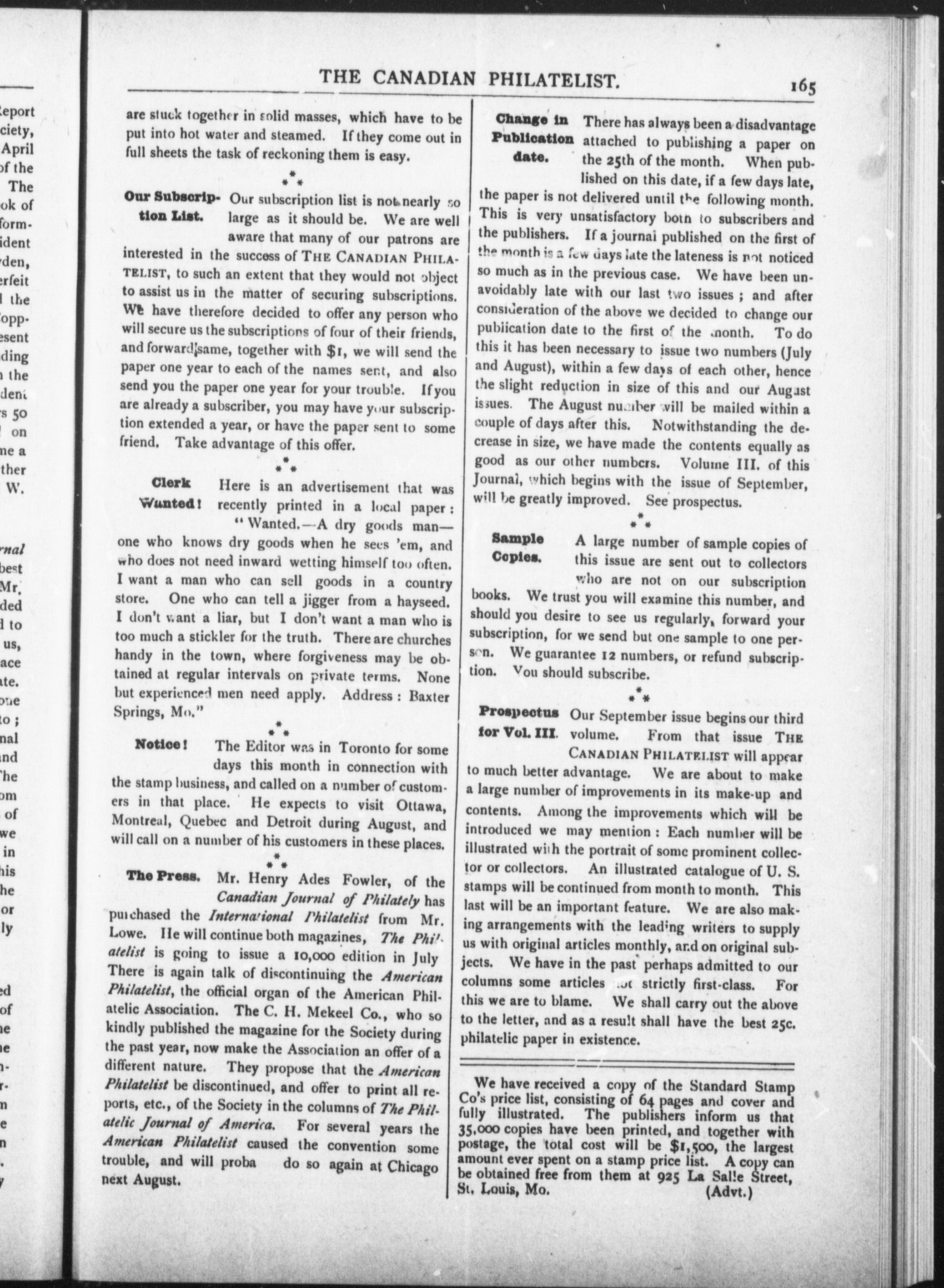 The Canadian philatelist : Vol. II, No. 11 (July 1893)