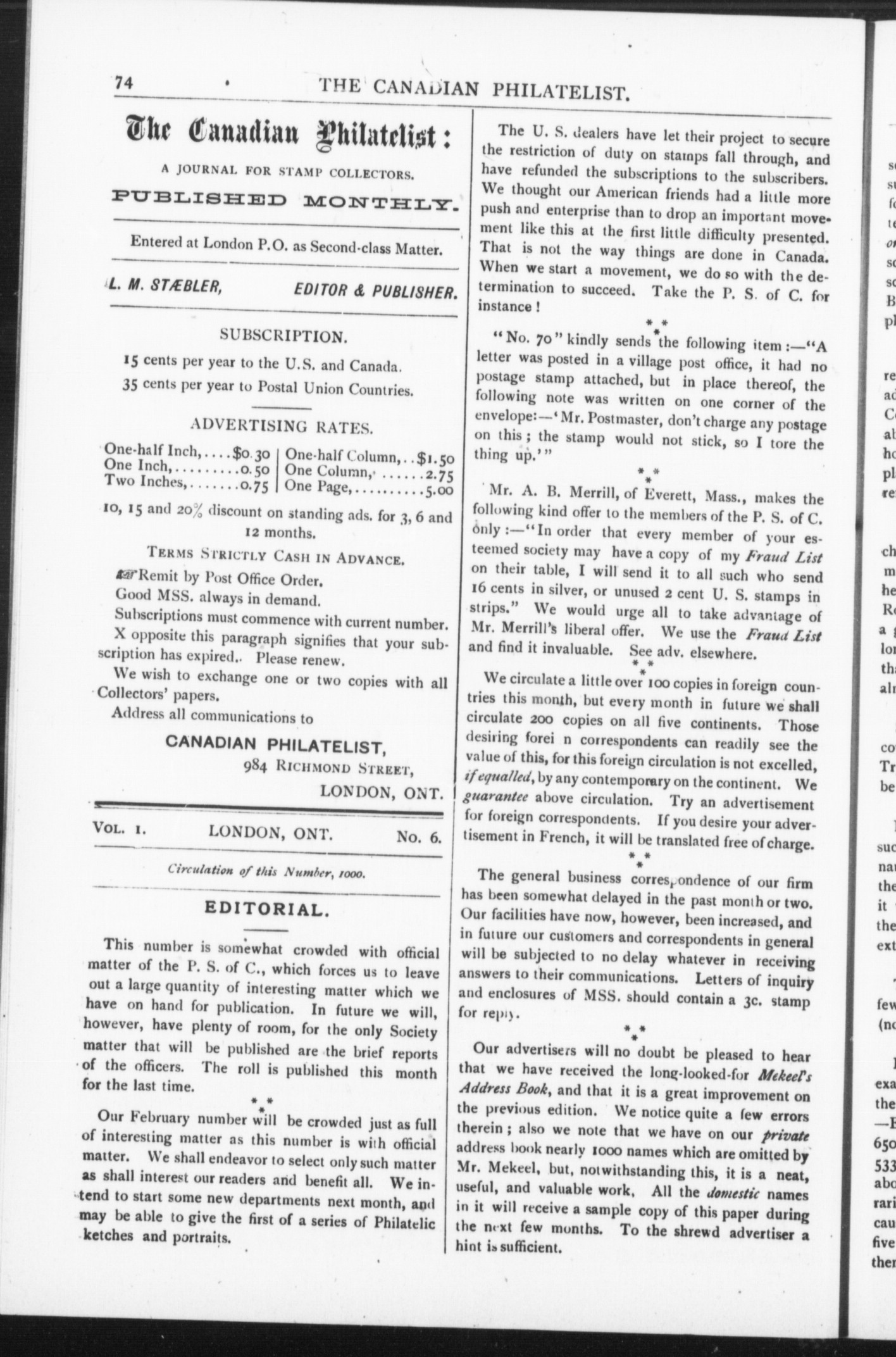 The Canadian philatelist : Vol. I, No. 6 (January 1892)