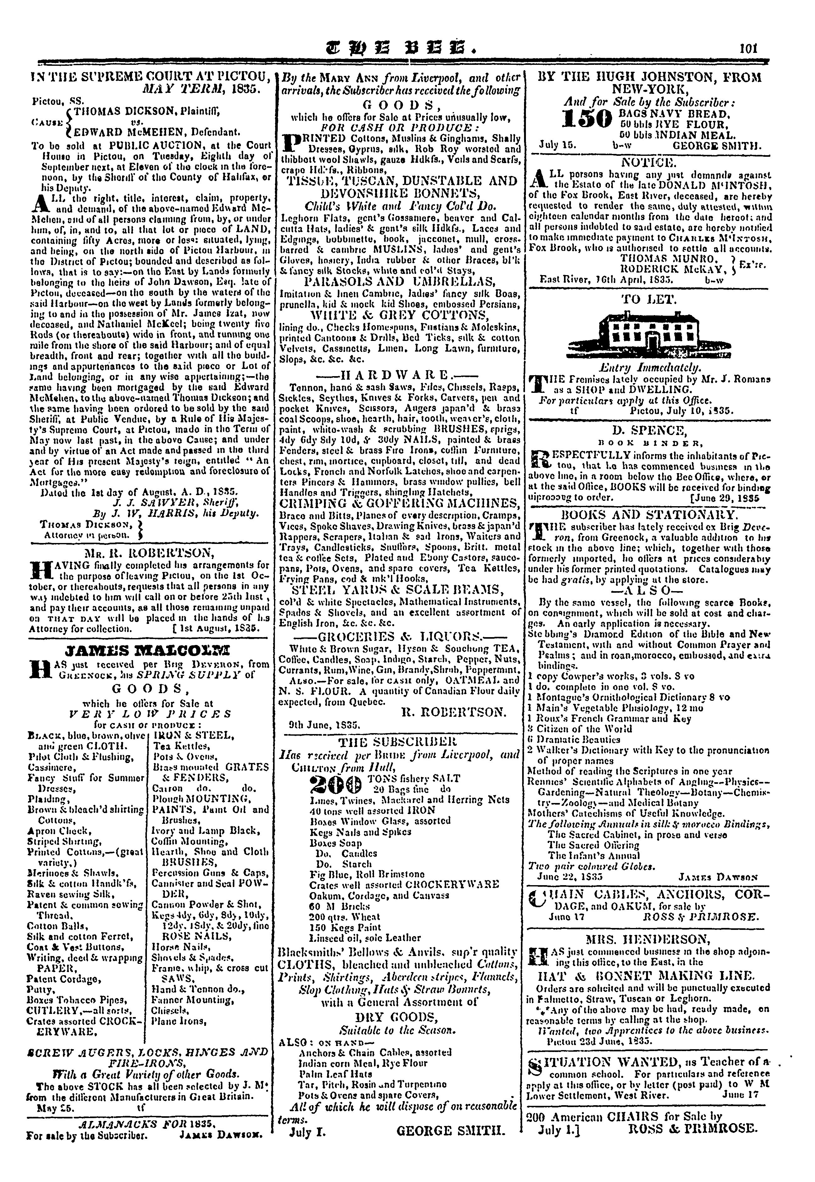 - [Pictou, N.S.?] : J. Dawson, [1835]