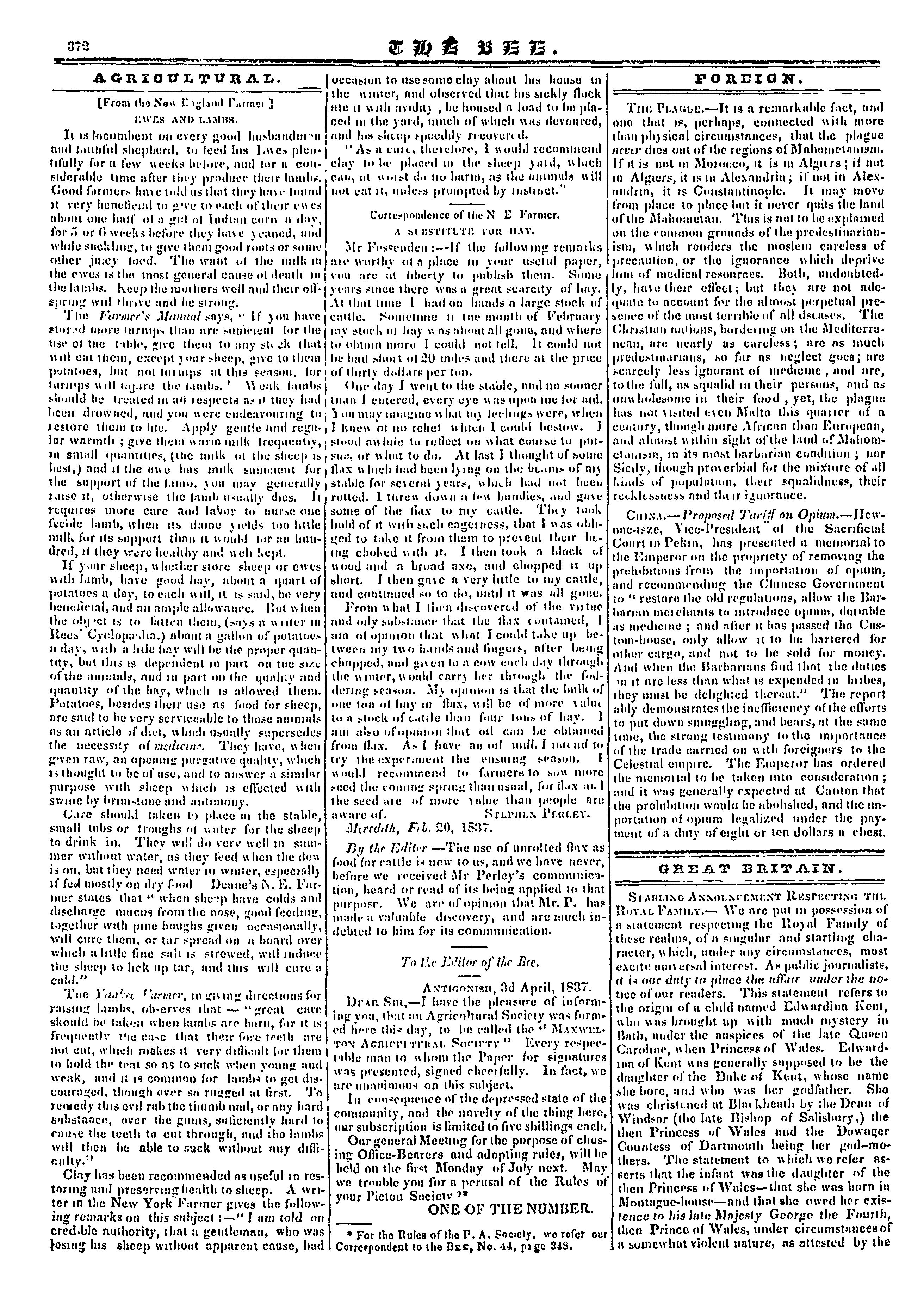 The bee [Vol. 2, no. 47 (Apr. 12, 1837)]
