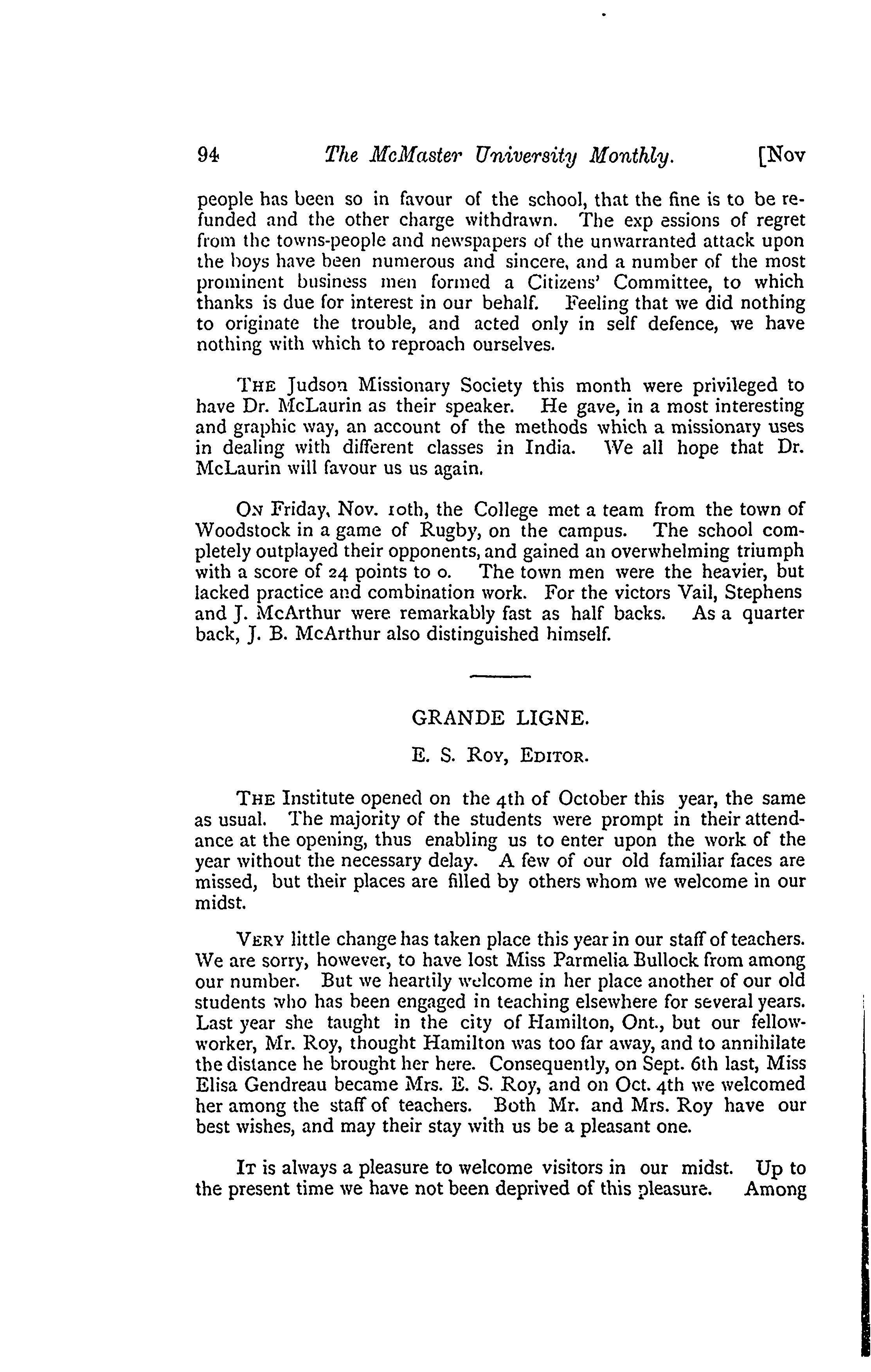 The McMaster University monthly : Nov. 1899