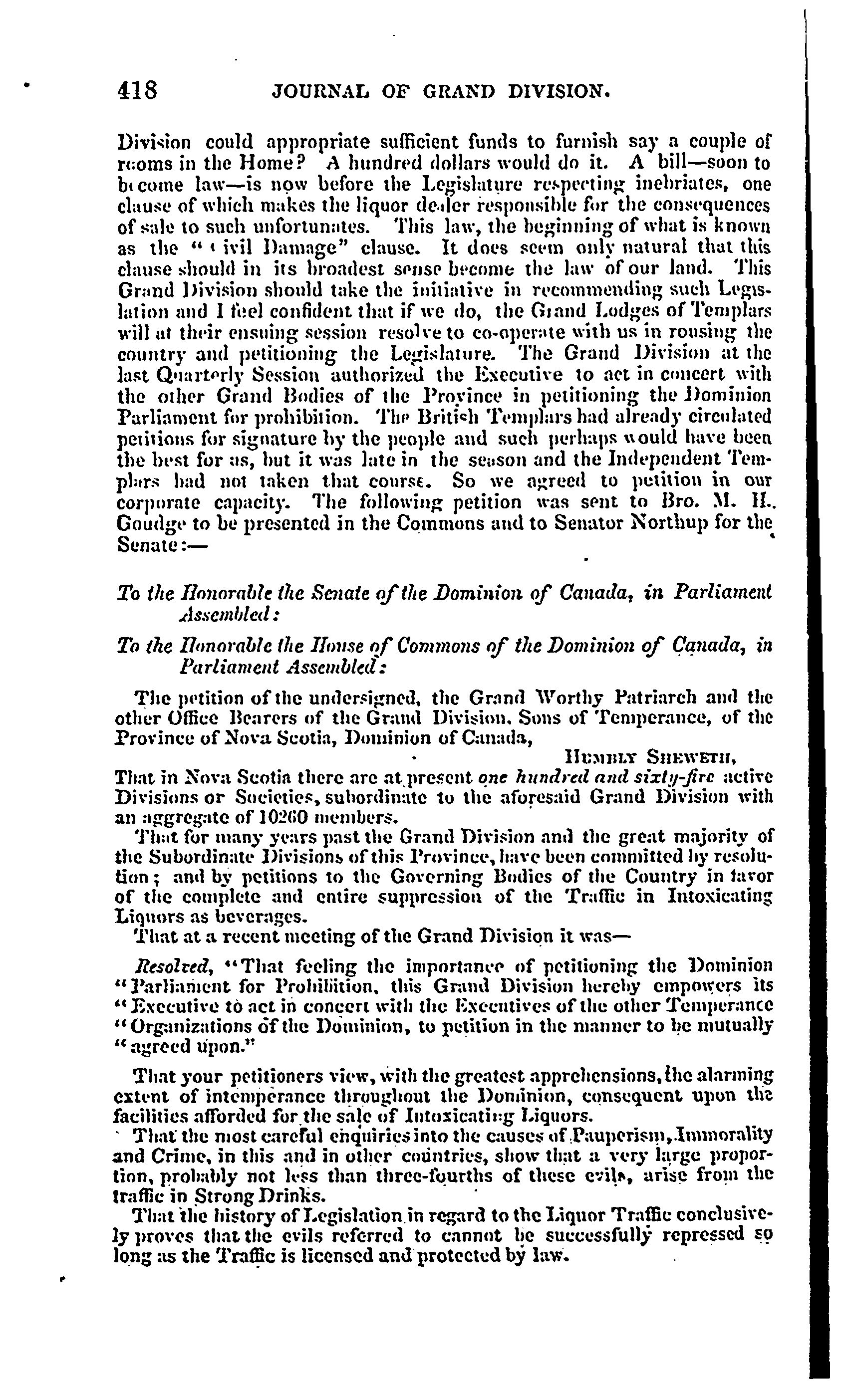 - Journal of proceedings of the Grand Division, S. of T. of Nova Scotia [Vol. 8, no. 10 (Apr. 1875)]