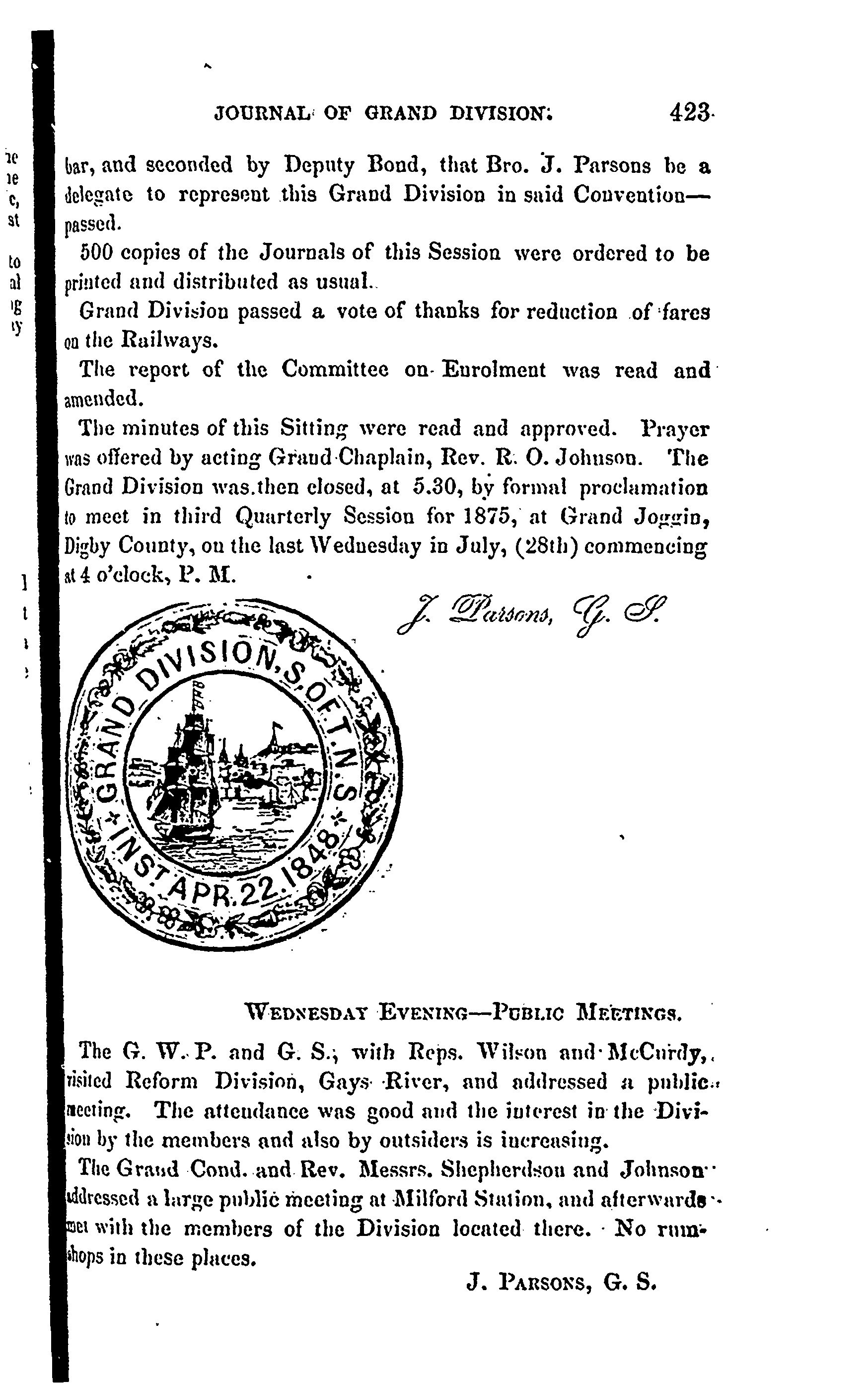 Journal of the proceedings of the Grand Division of the Sons of Temperance of the Province of Nova Scotia at the quarterly session ... : [Vol. 8, no. 10 (Apr. 1875)]