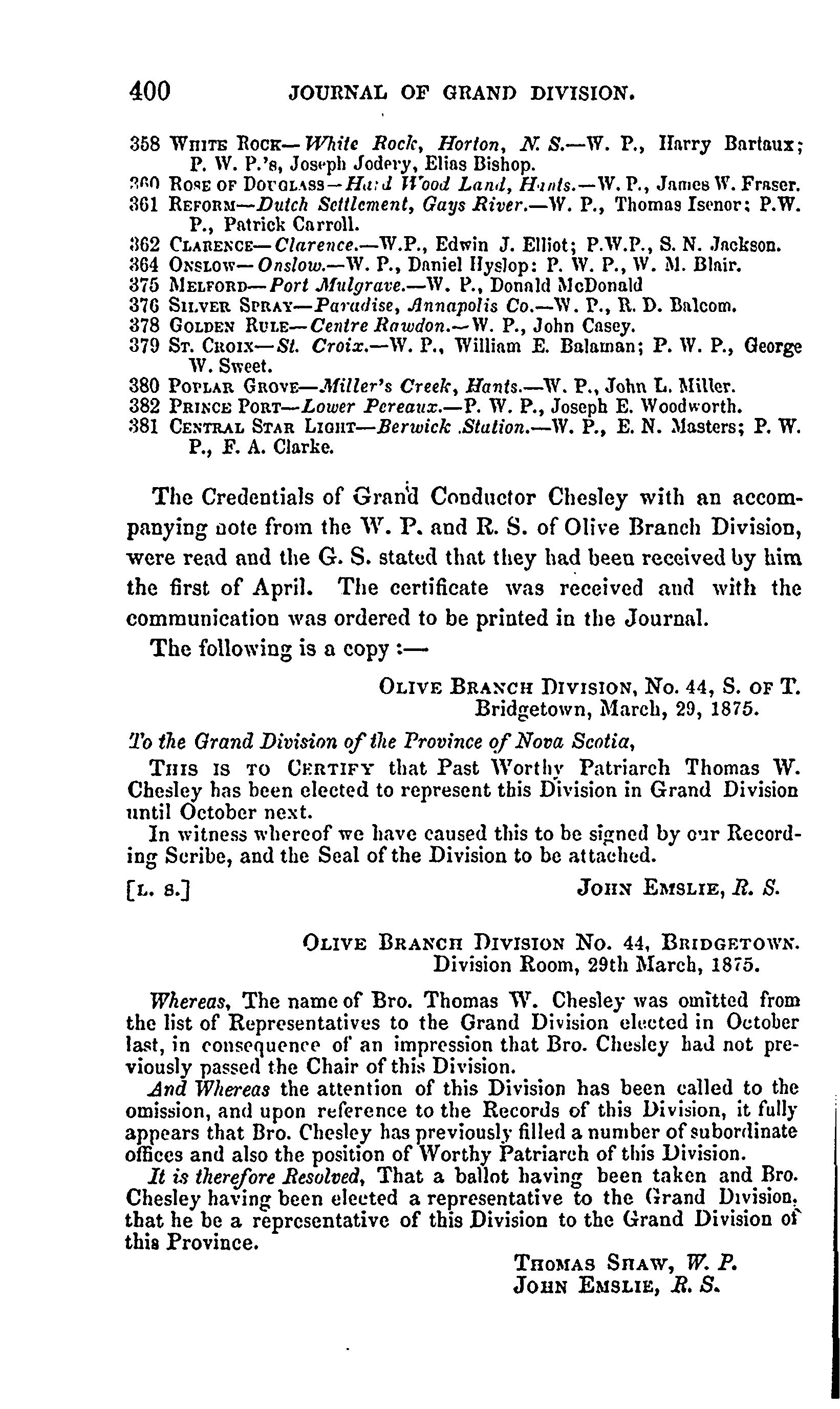 - Journal of proceedings of the Grand Division, S. of T. of Nova Scotia [Vol. 8, no. 10 (Apr. 1875)]