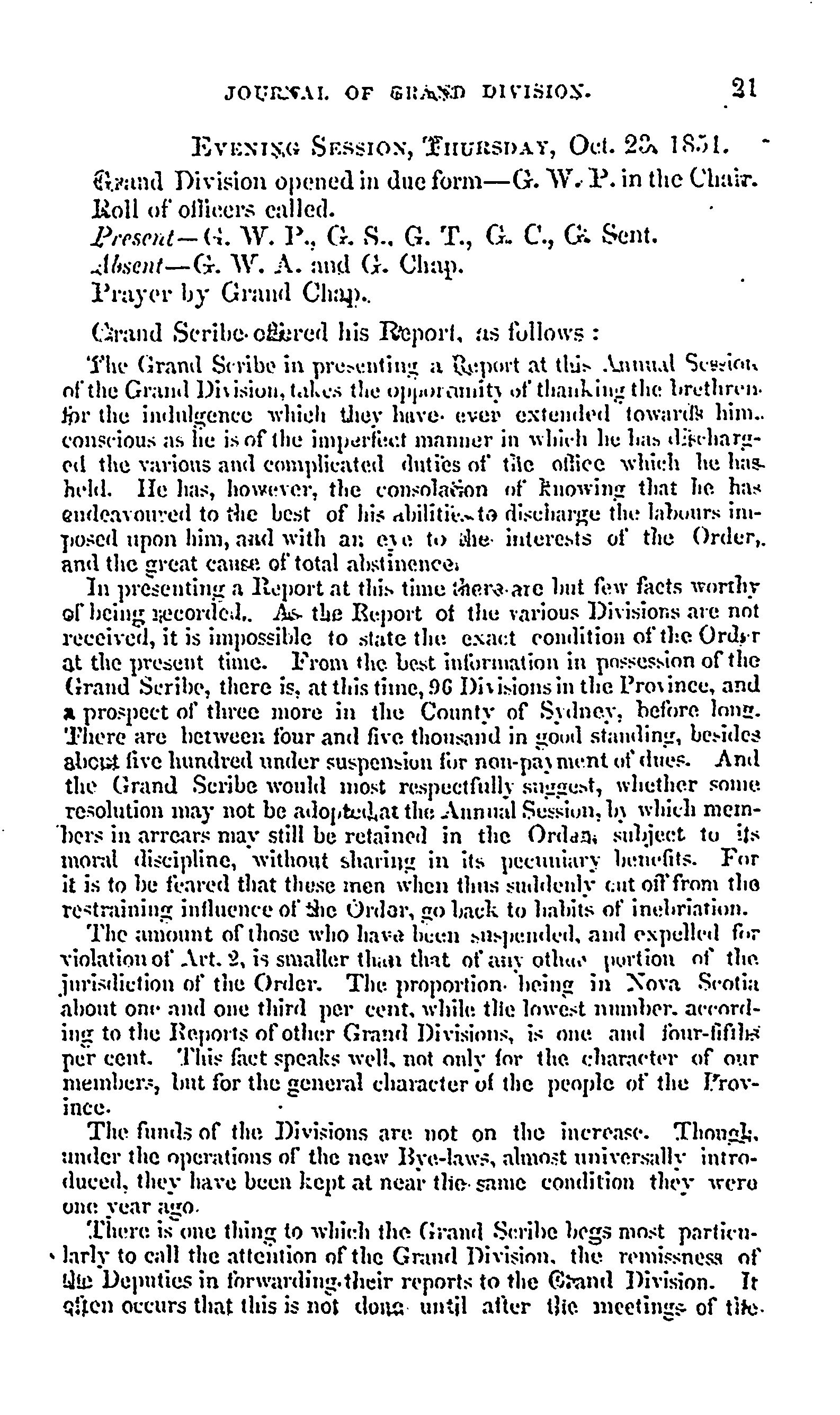 Journal of the proceedings of the Grand Division of the Sons of Temperance of the province of Nova Scotia at the annual session ... [Oct. 22, 1851]