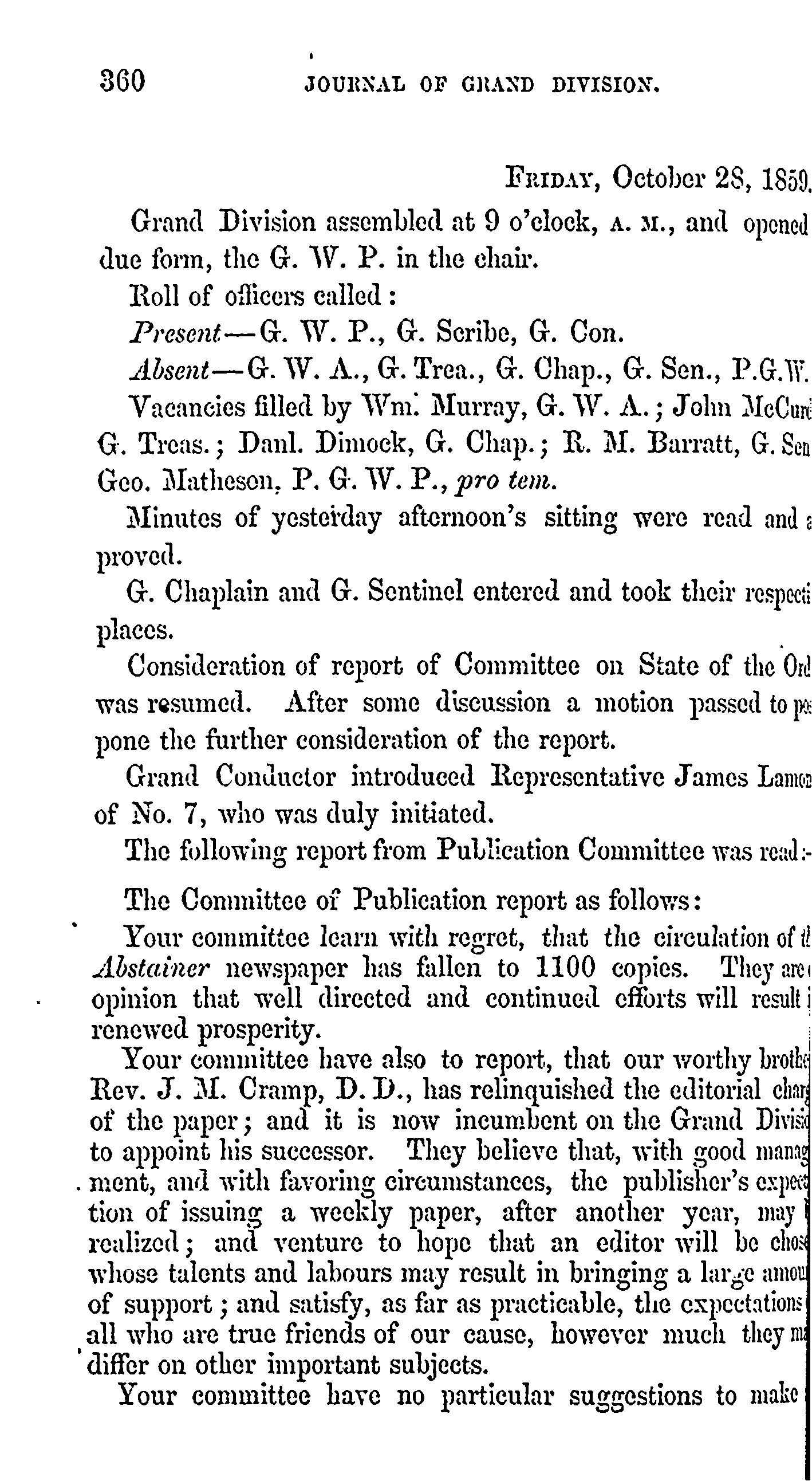 - Journal of proceedings of the [G]rand Division of Nova-Scotia [Oct. 26/27/28, 1859]