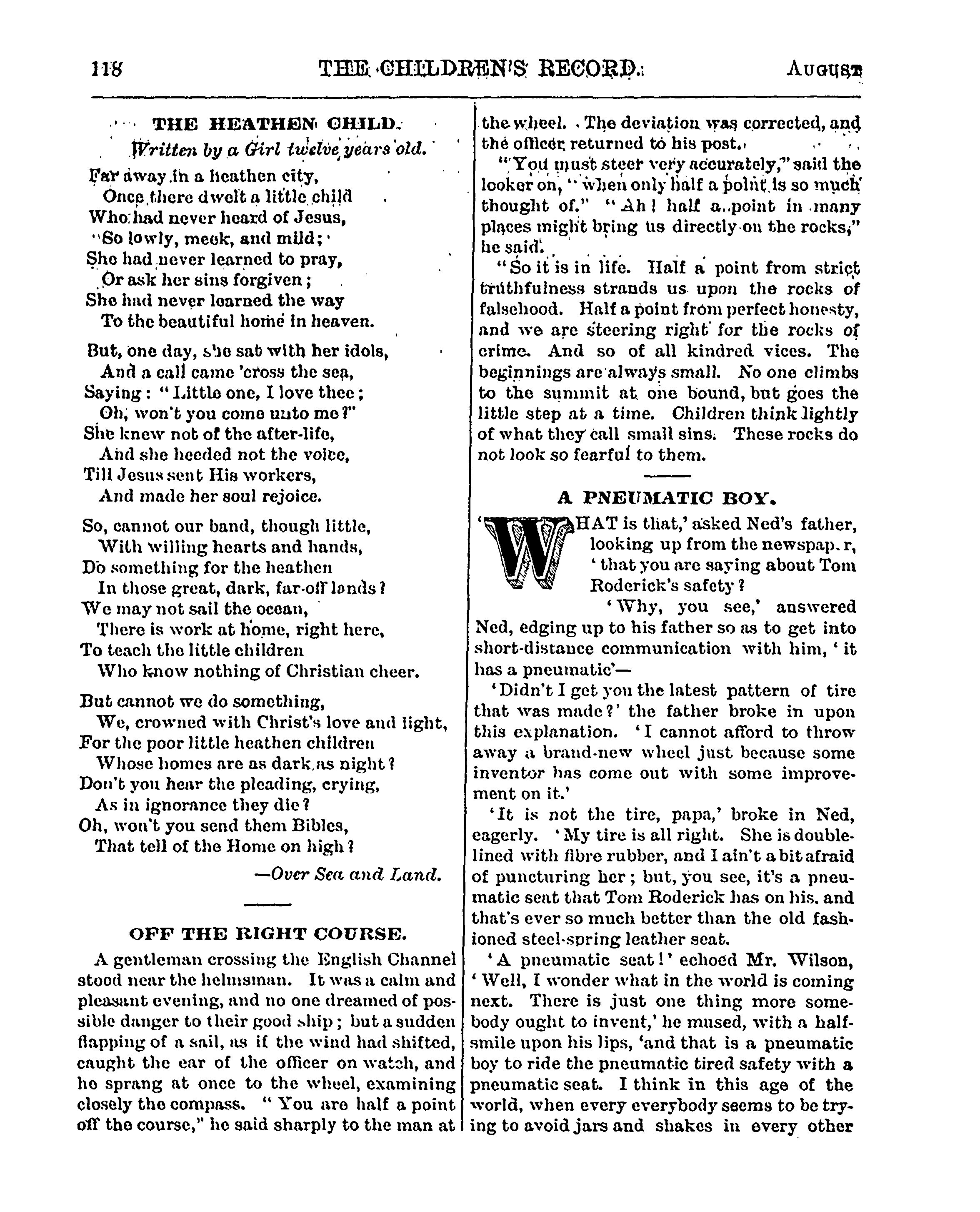 The children's record : [Vol. 11, no. 8 (Aug. 1896)]
