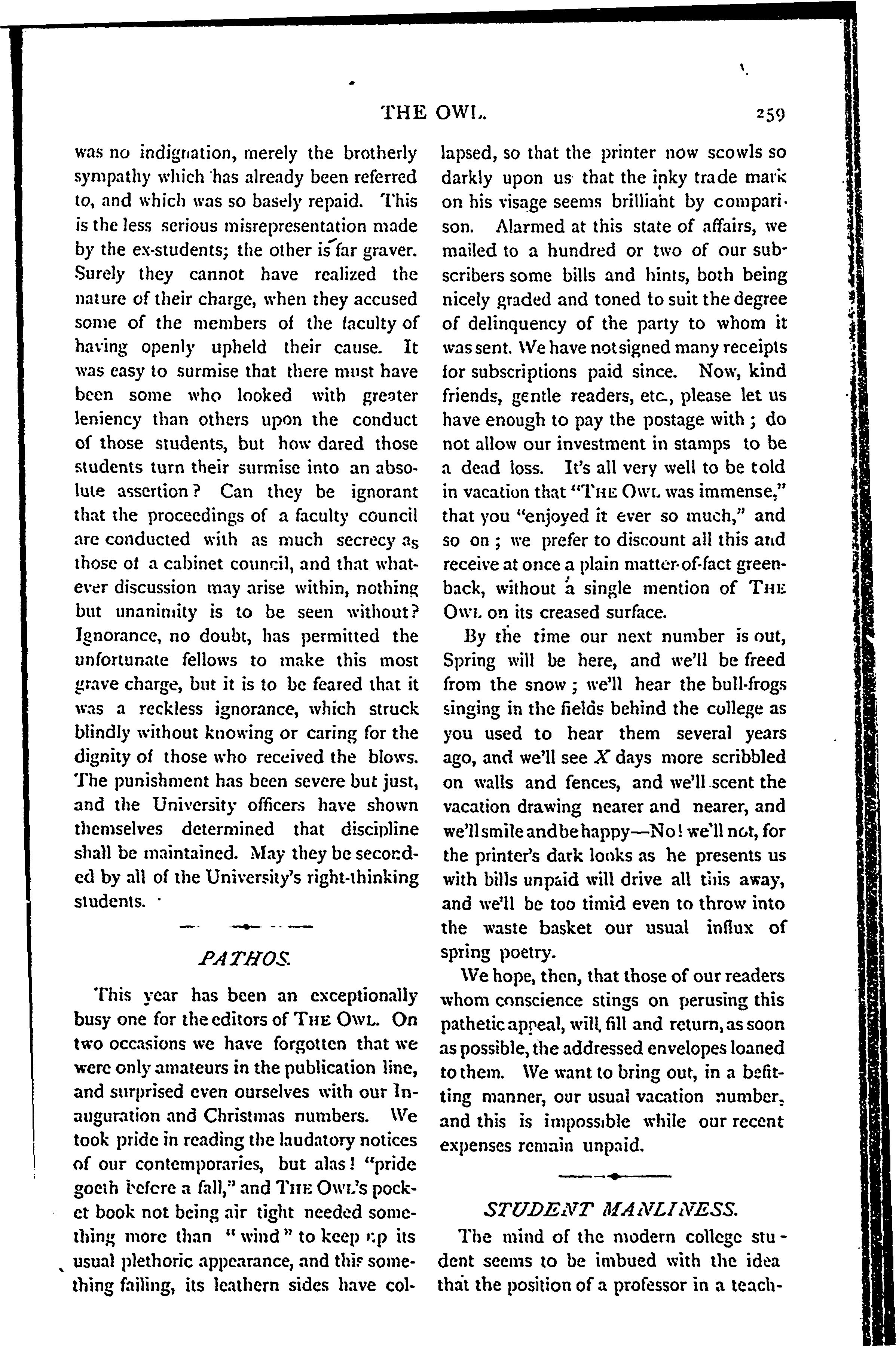The owl : Vol. 3, no. 7 (Mar. 1890)