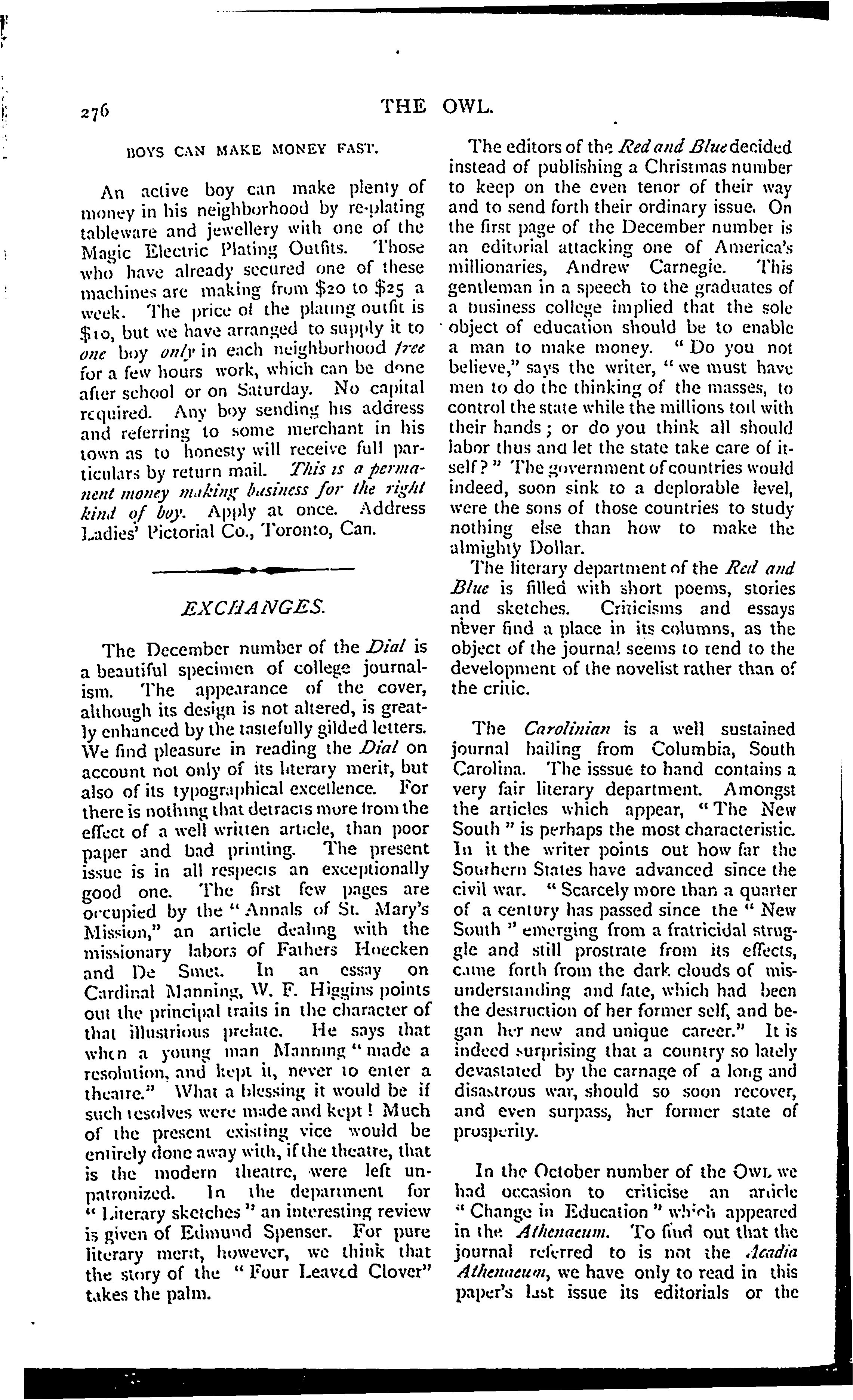 The owl : Vol. 5, no. 6 (Jan. 1892)