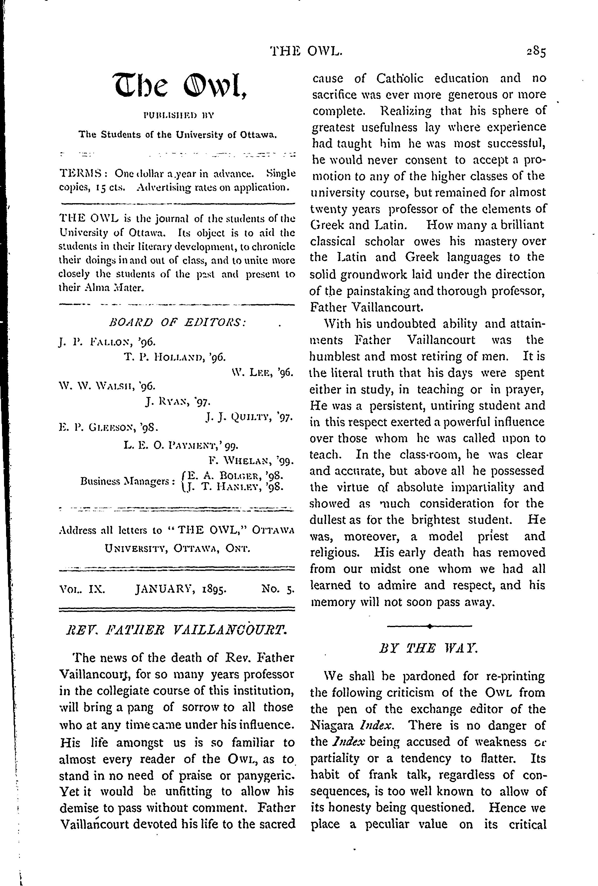 The owl : Vol. 9, no. 5 (Jan. 1895 [i.e. 1896])