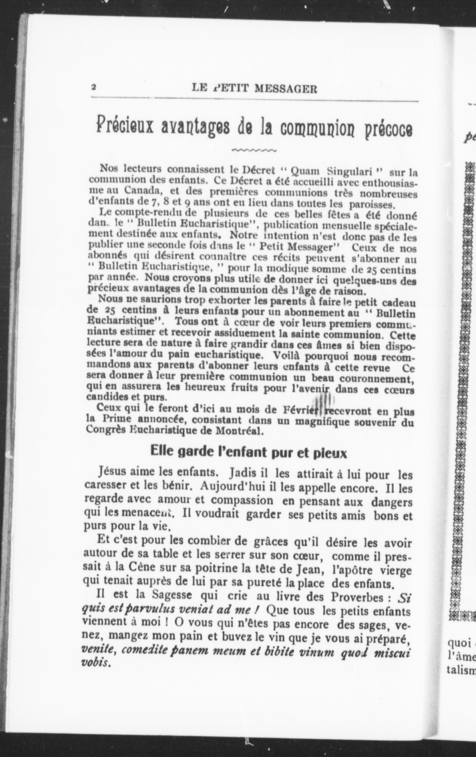 Le petit messager du T-S Sacrement : 14e année, no 1 (janv. 1911)