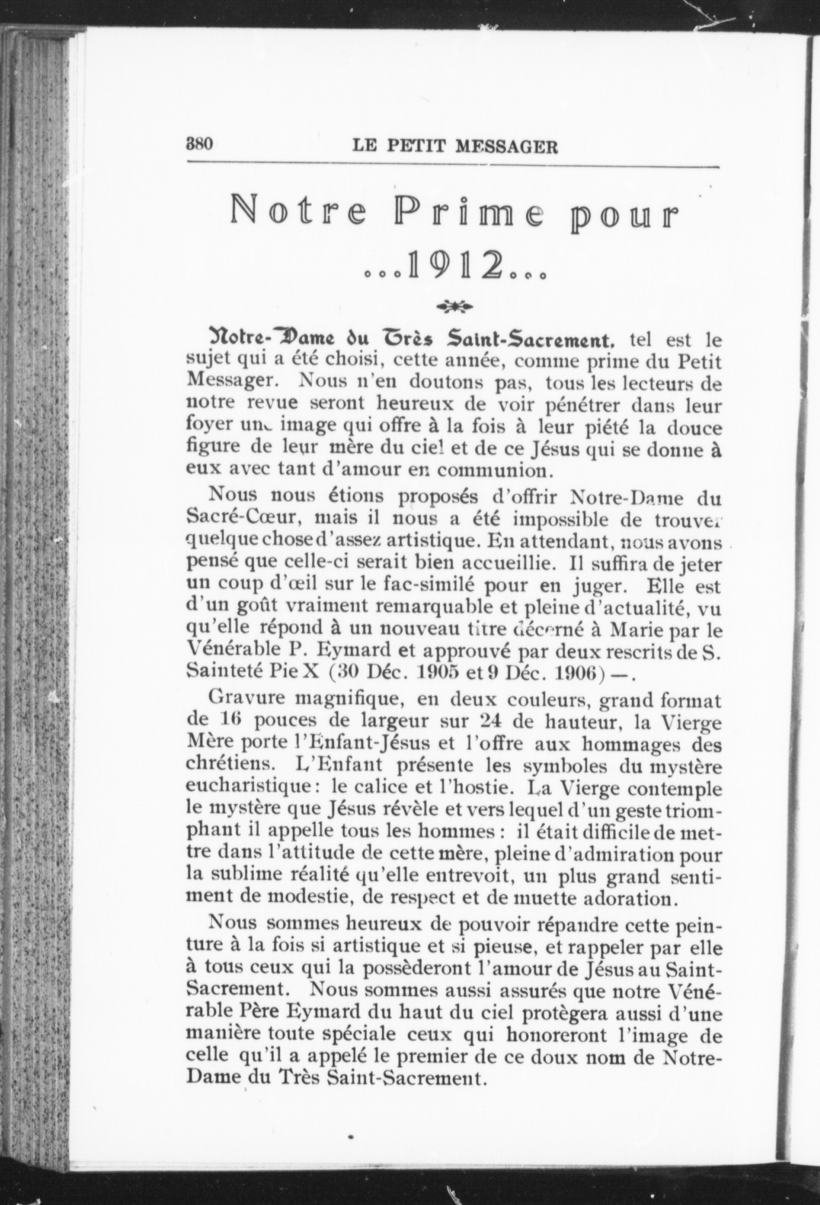 Le petit messager du T-S Sacrement : 14e année, no 12 (déc. 1911)