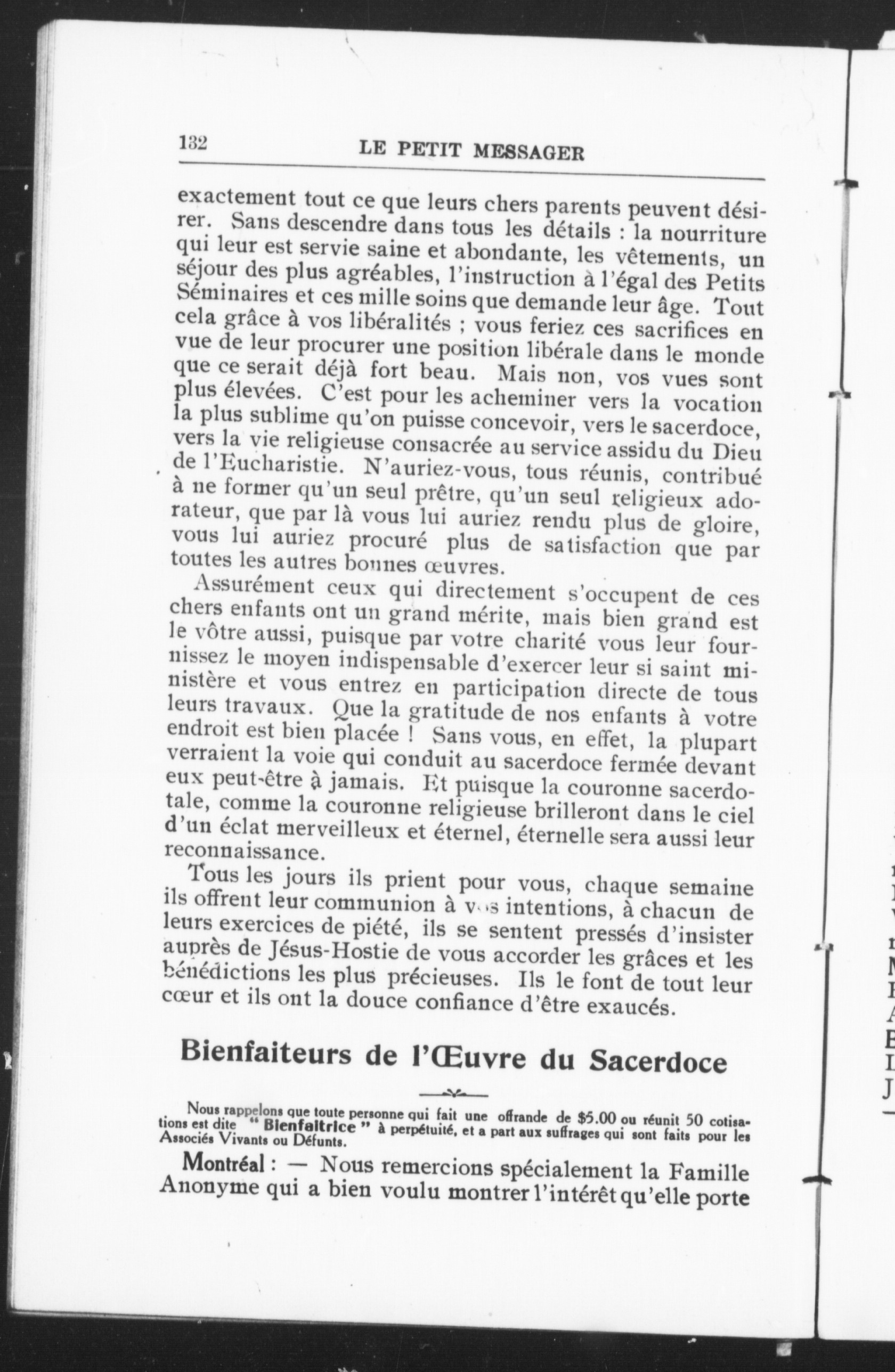 Le petit messager du T-S Sacrement : 15e année, no 4 (avril 1912)