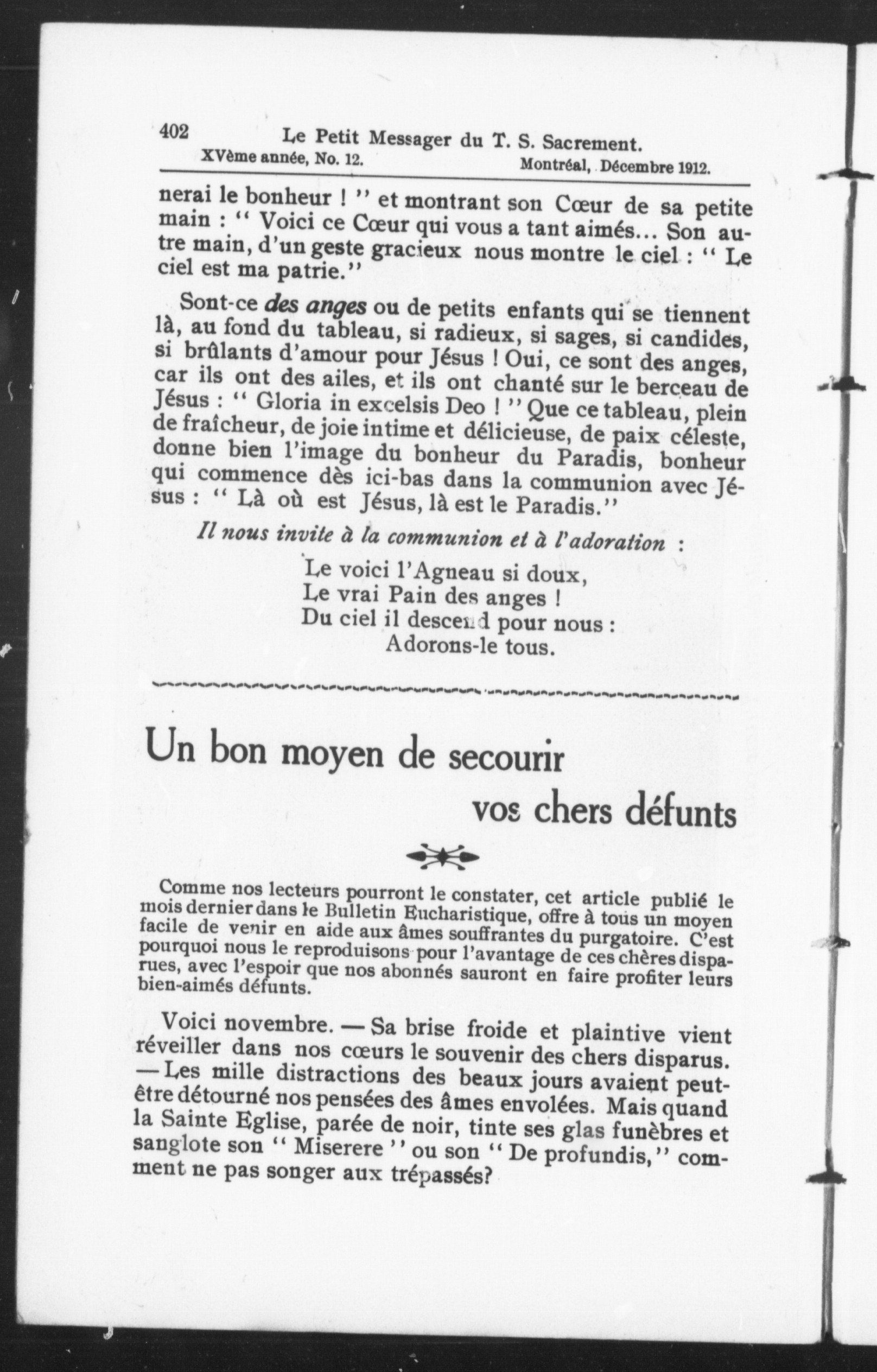 Le petit messager du T-S Sacrement : 15e année, no 12 (déc. 1912)