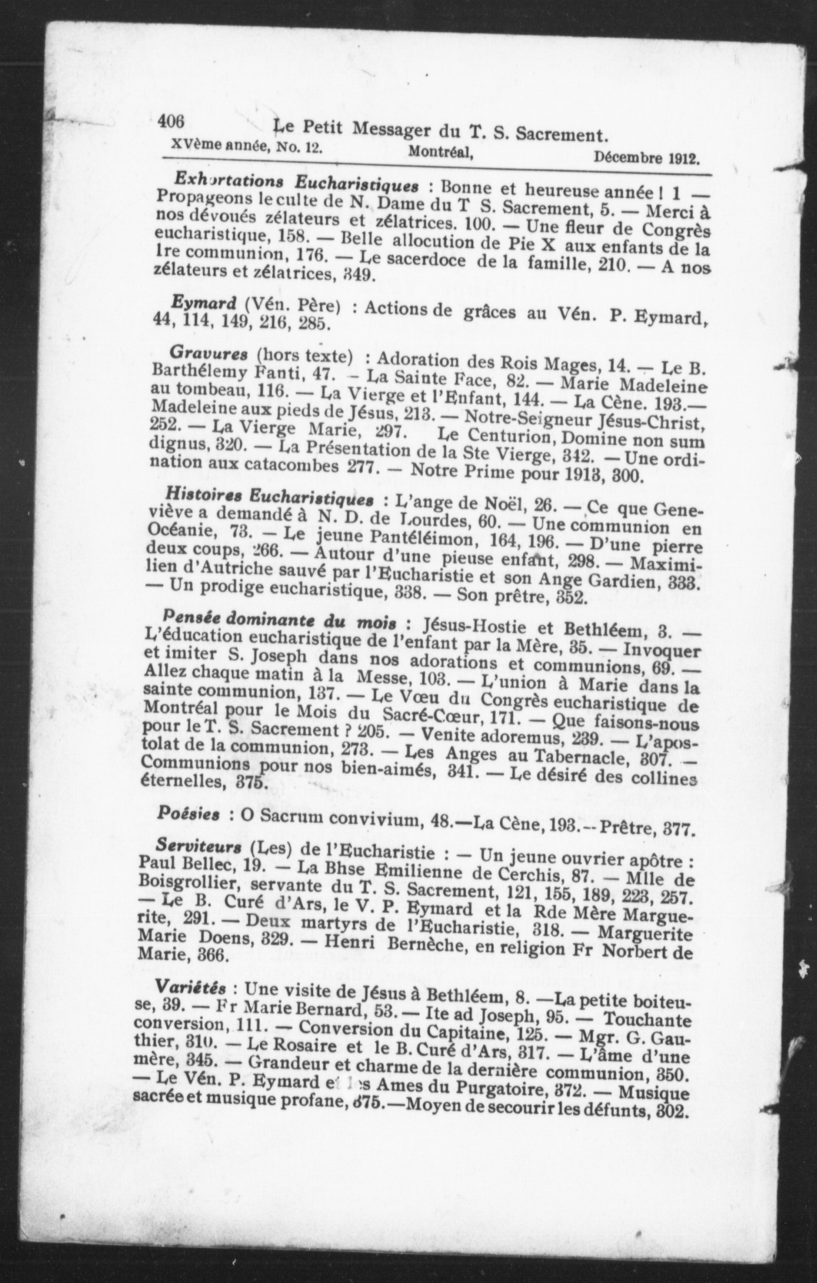 Le petit messager du T-S Sacrement : 15e année, no 12 (déc. 1912)