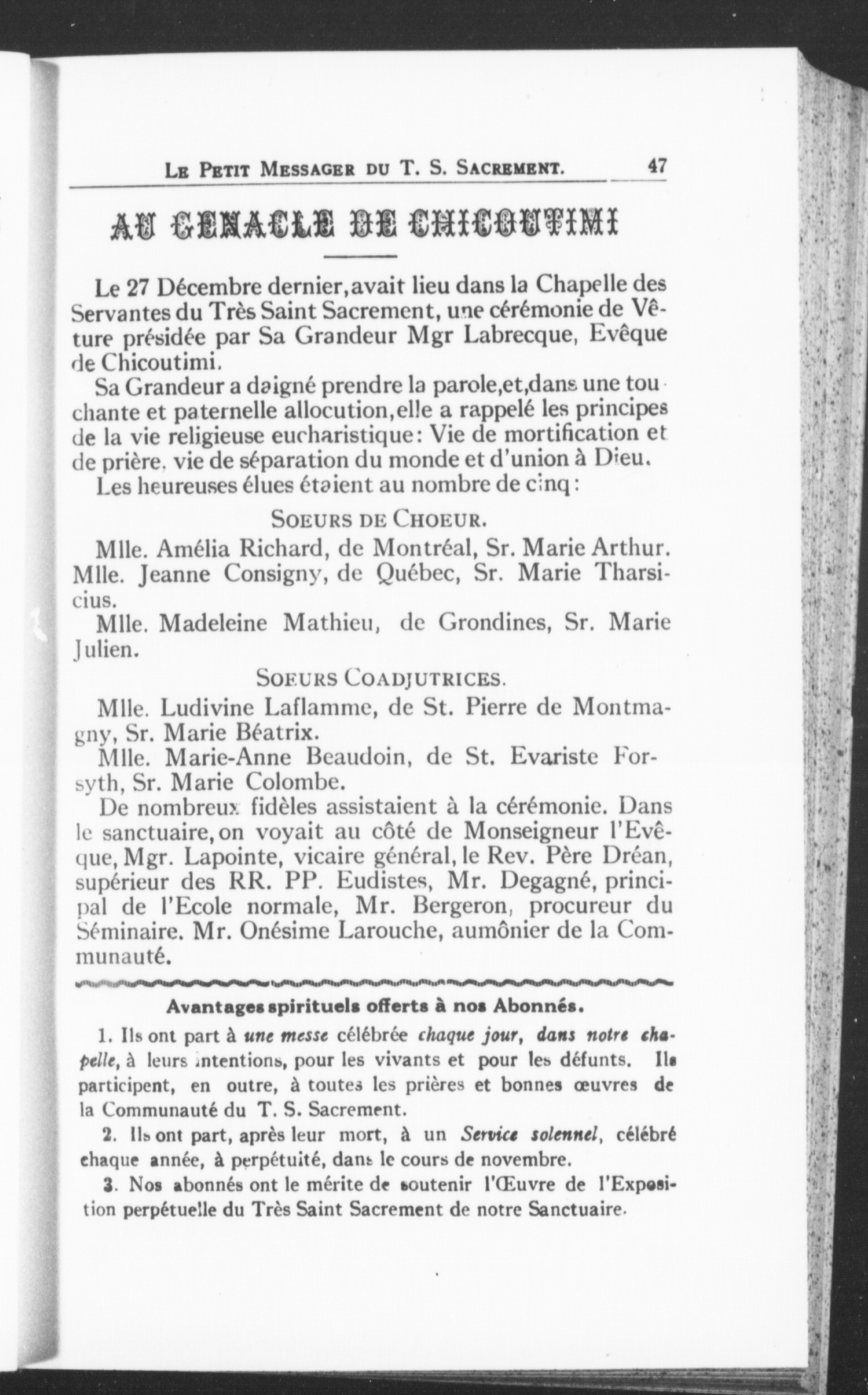 Le petit messager du T-S Sacrement : 18e année, no 2 (févr. 1915)
