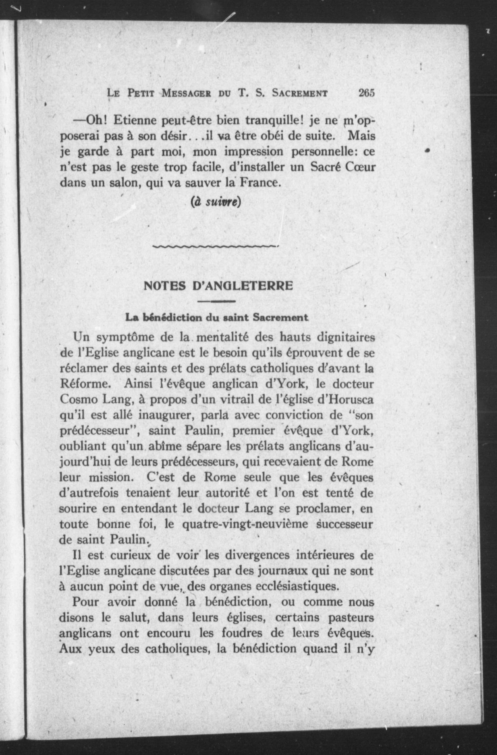 Le petit messager du T-S Sacrement : 22e année, no 9 (sept. 1919)