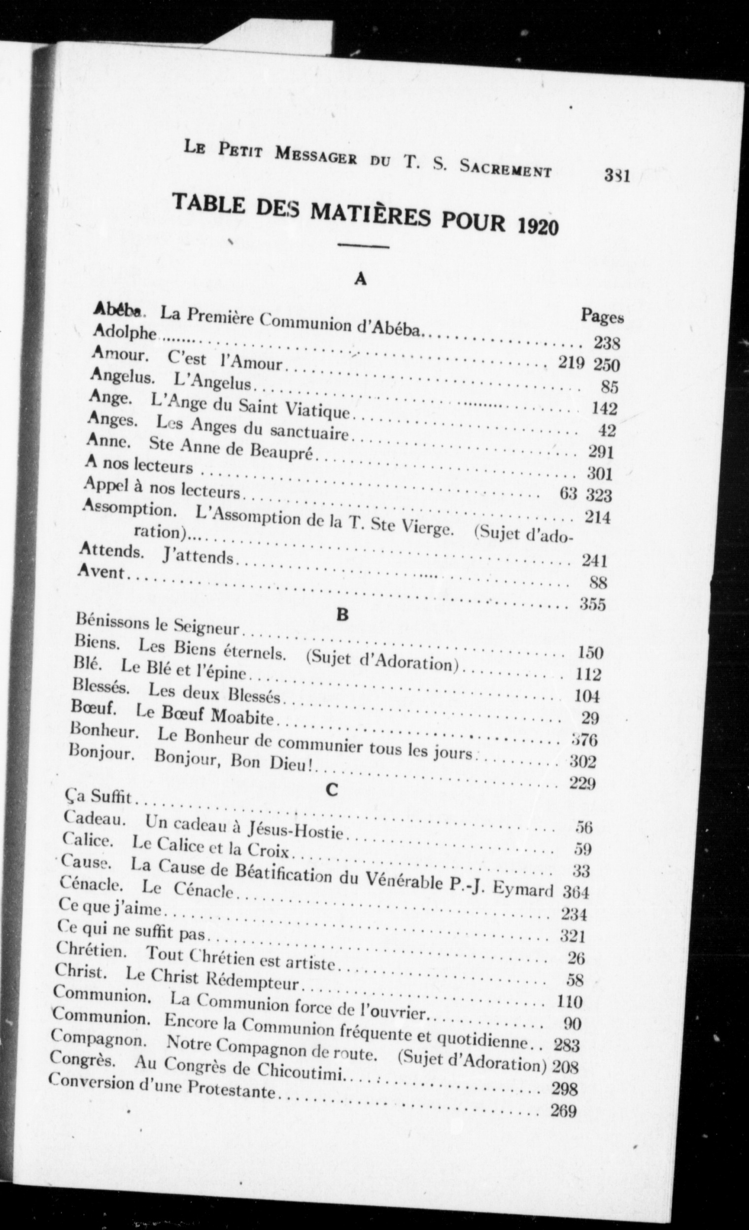Le petit messager du T-S Sacrement : 23e année, no 12 (déc. 1920)