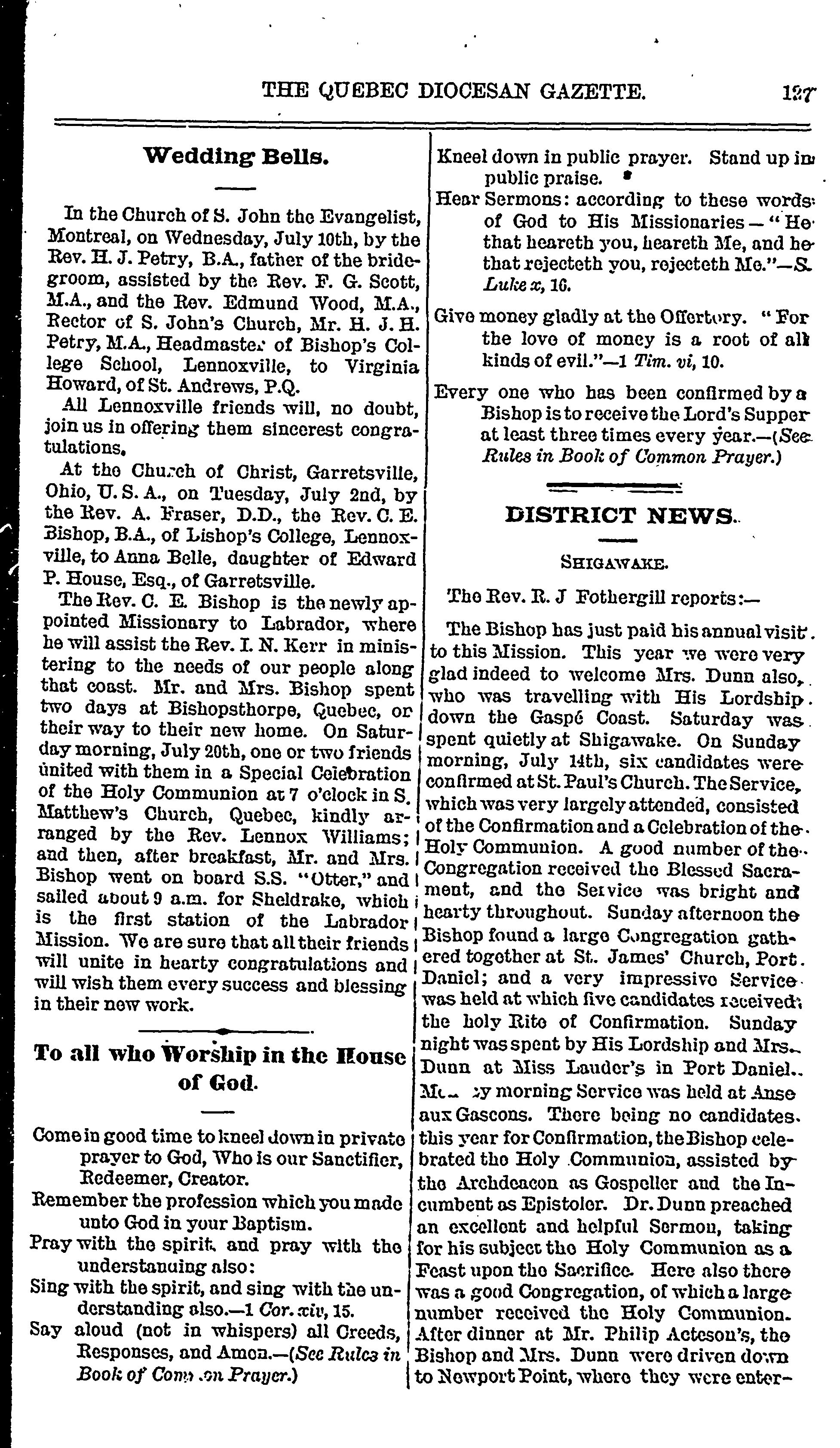 - [Quebec : Printed and pub. for the Lord Bishop at the Chronicle Office, 1895]