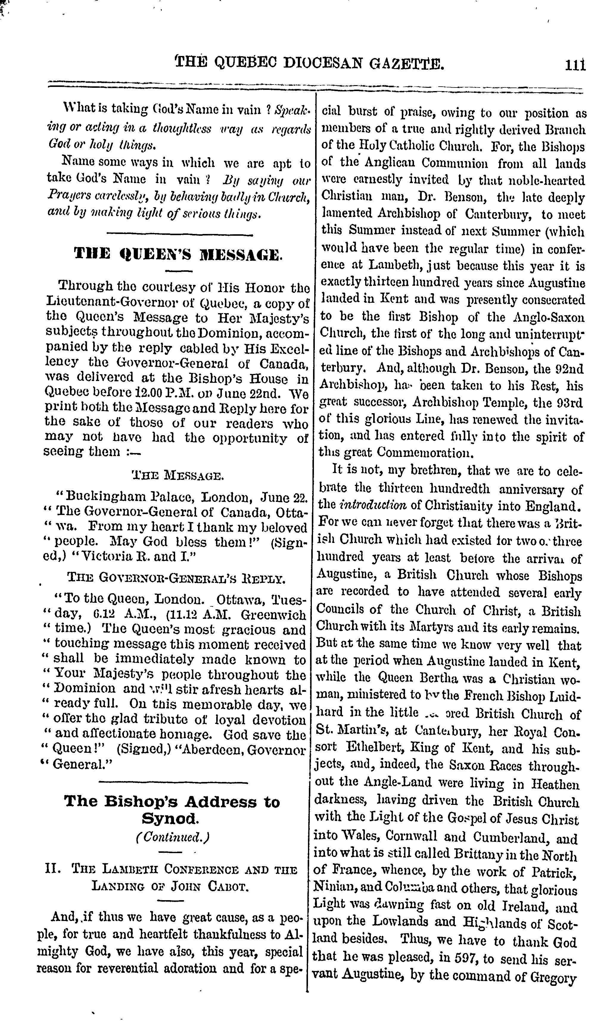 - [Québec : Printed and pub. for the Lord Bishop at the Chronicle Office, 1897]