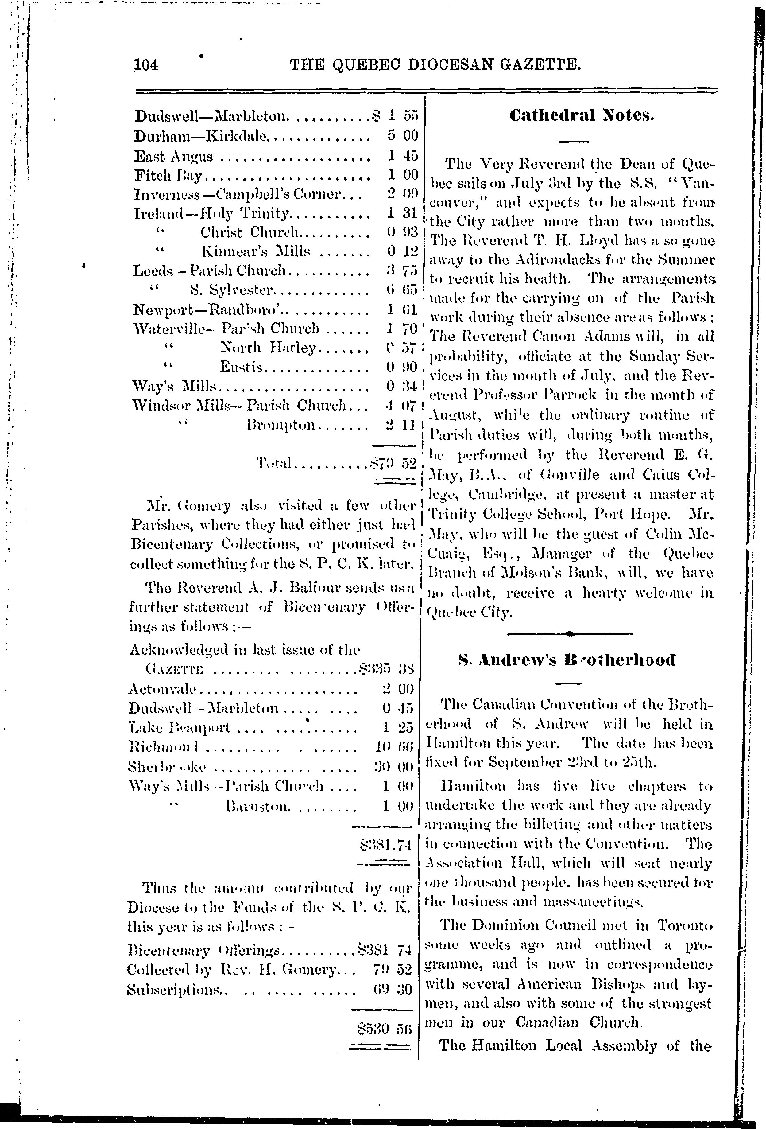 [Québec : Printed and pub. for the Lord Bishop at the Chronicle Office, 1898]