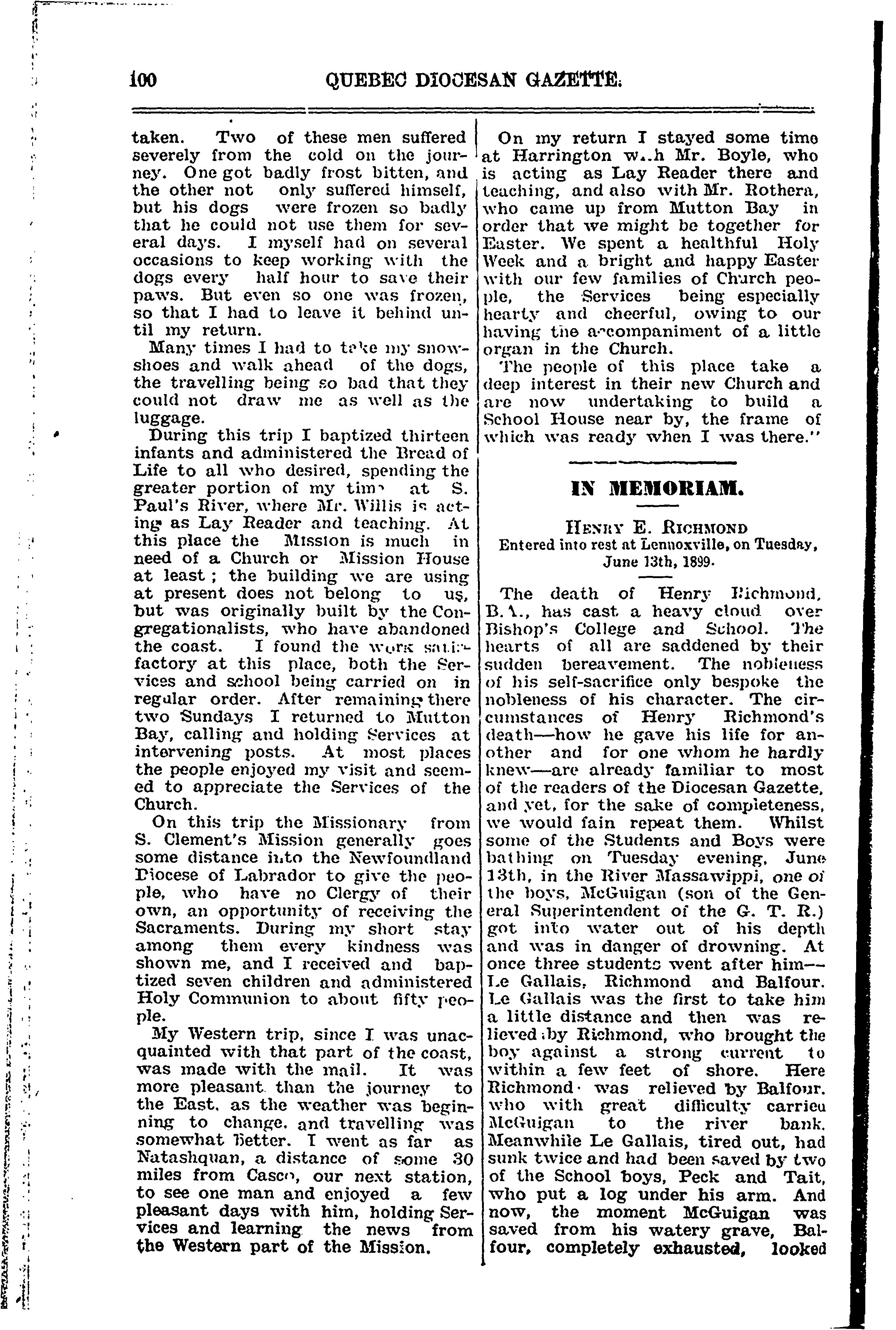 [Québec : Printed and pub. for the Lord Bishop at the Chronicle Office, 1899]; 13 images with full-text search