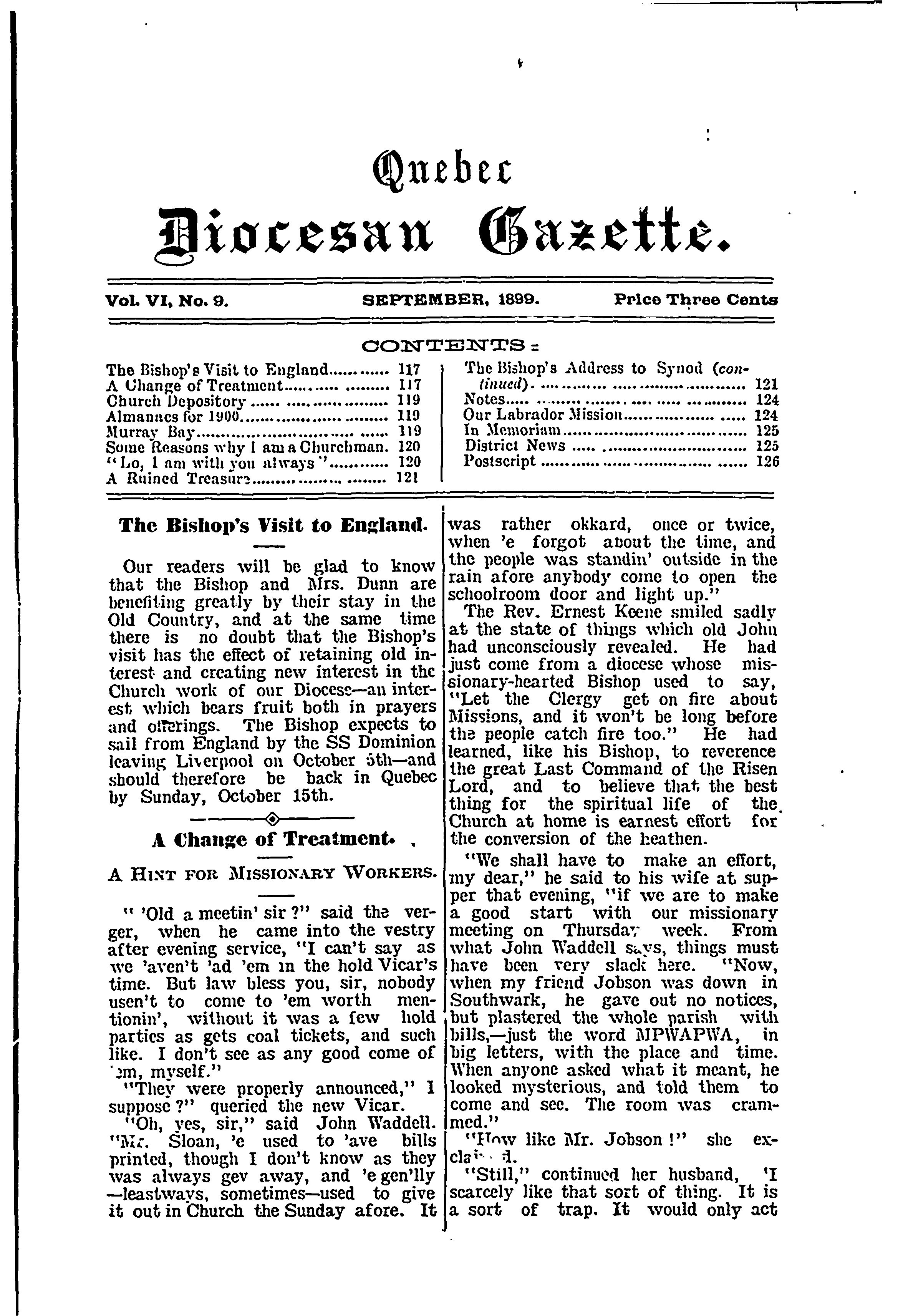 - Quebec diocesan gazette [Vol. 6, no. 9 (Sept. 1899)]