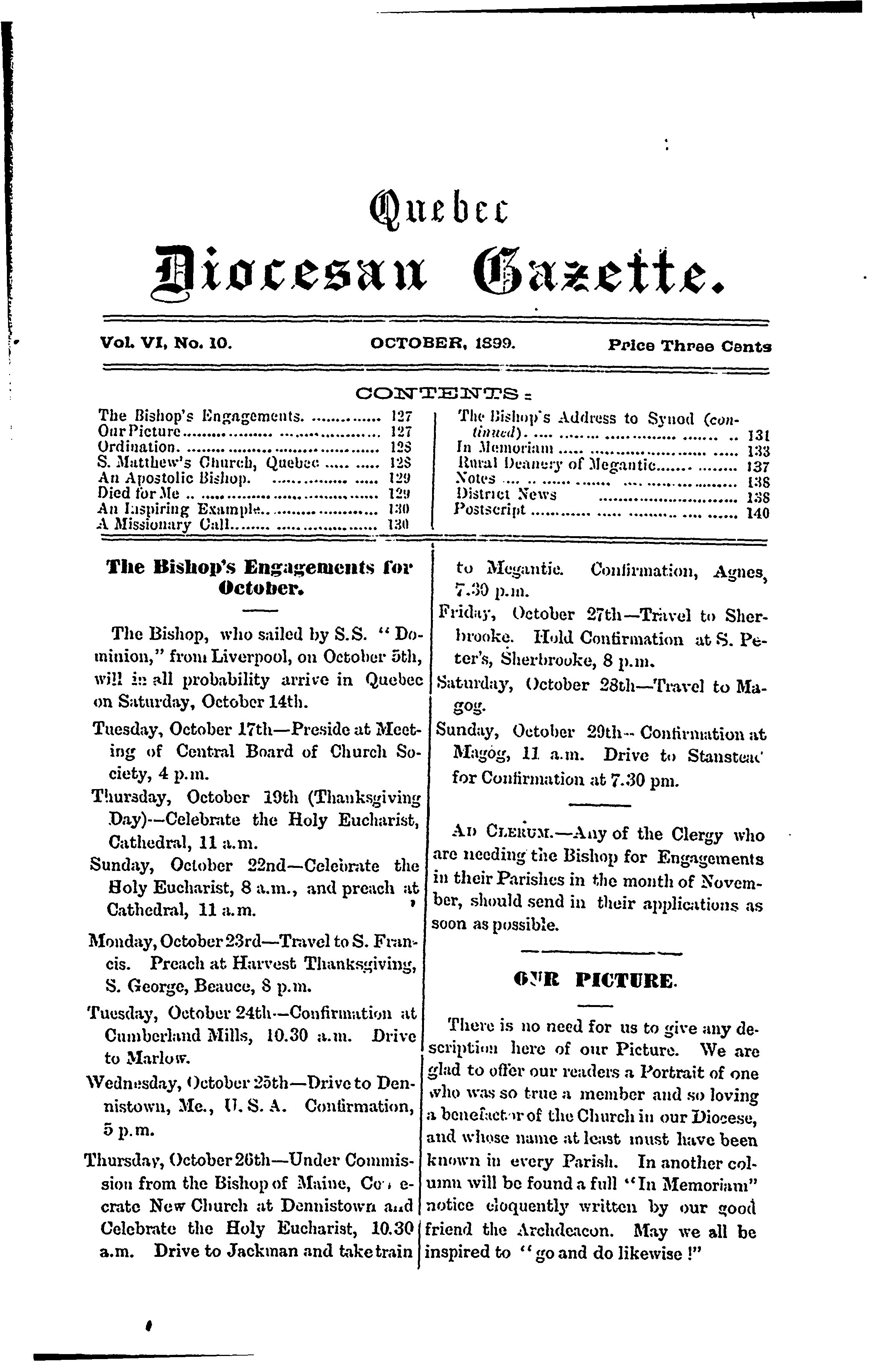Quebec diocesan gazette [Vol. 6, no. 10 (Oct. 1899)]