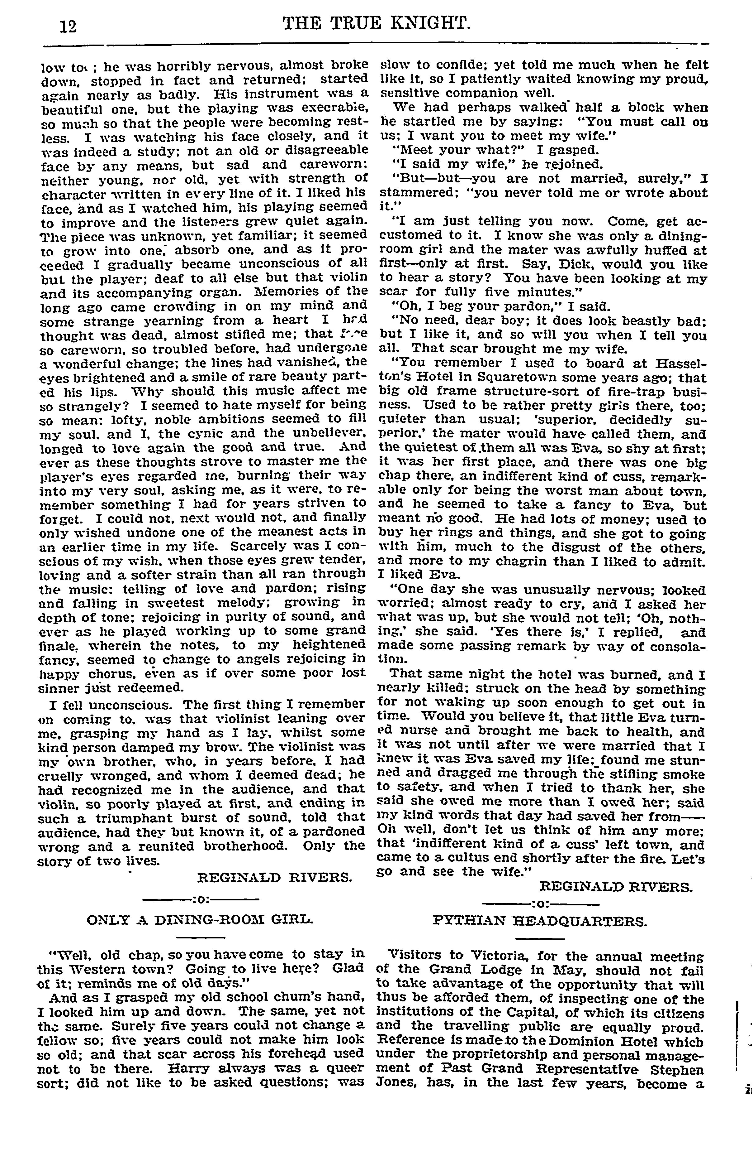 - The true knight of British Columbia [Vol. 1, no. 9 (Apr. 1899)]