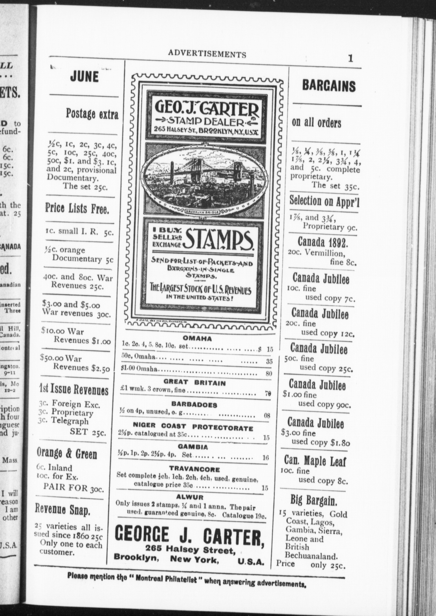 The Montreal Philatelist : Vol. 2, No. 1 (June 15, 1899)
