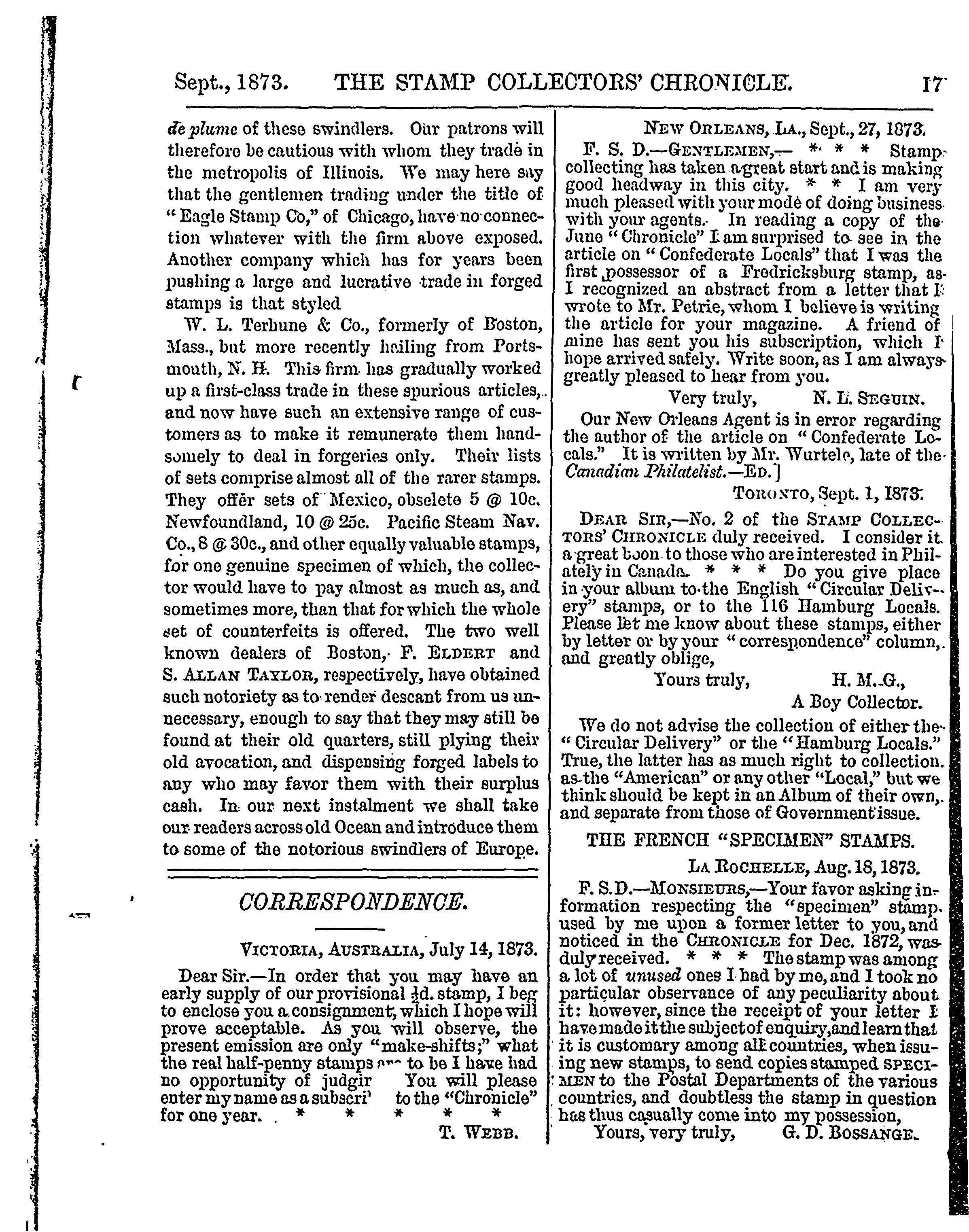 - The stamp collector's chronicle [New ser. v. 1, no. 3 (Sept. 1873)]