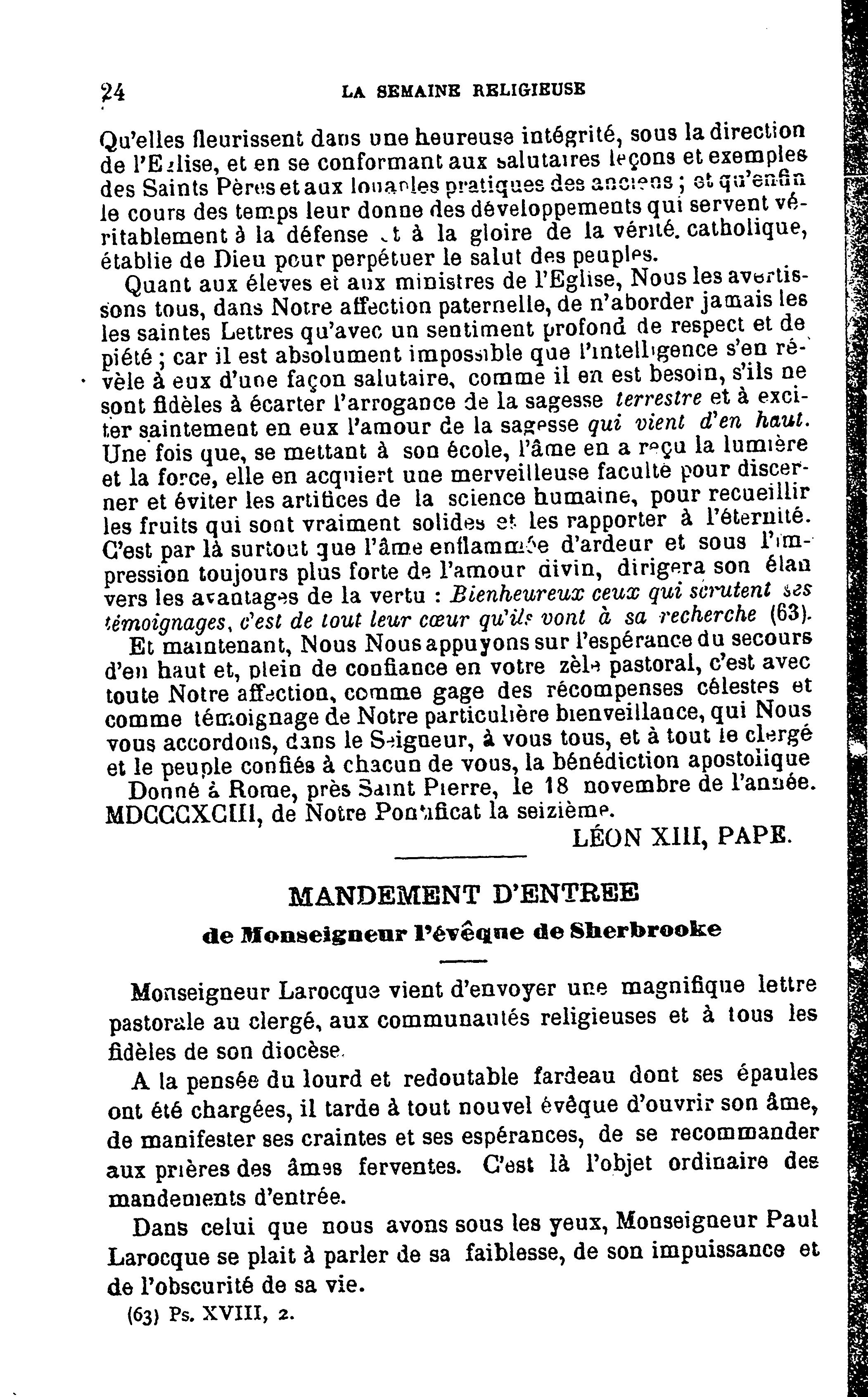 La semaine religieuse de Montréal : Vol. 23, no 2 (13 janv. 1893 [i.e. 1894])