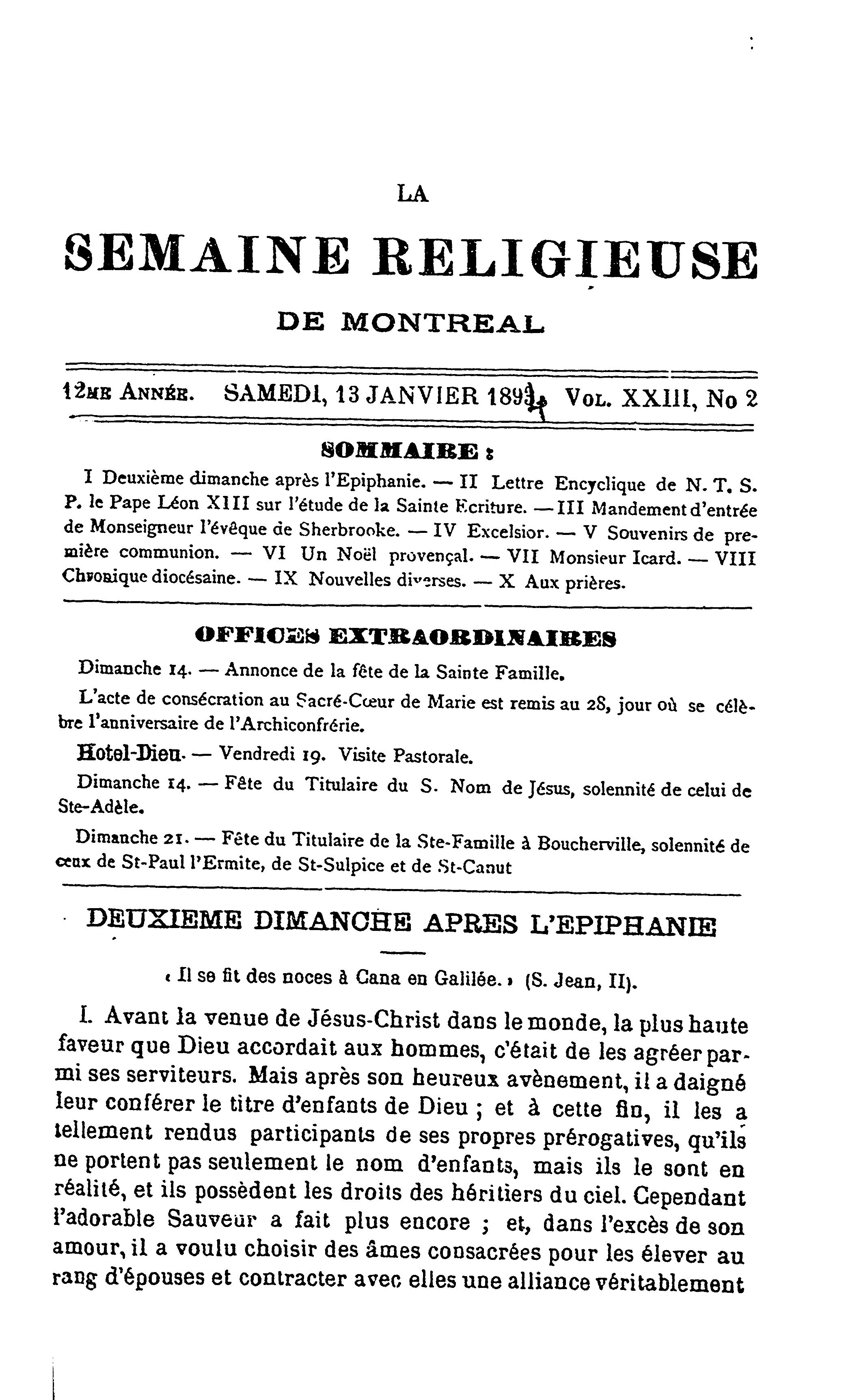 La semaine religieuse de Montréal : Vol. 23, no 2 (13 janv. 1893 [i.e. 1894])